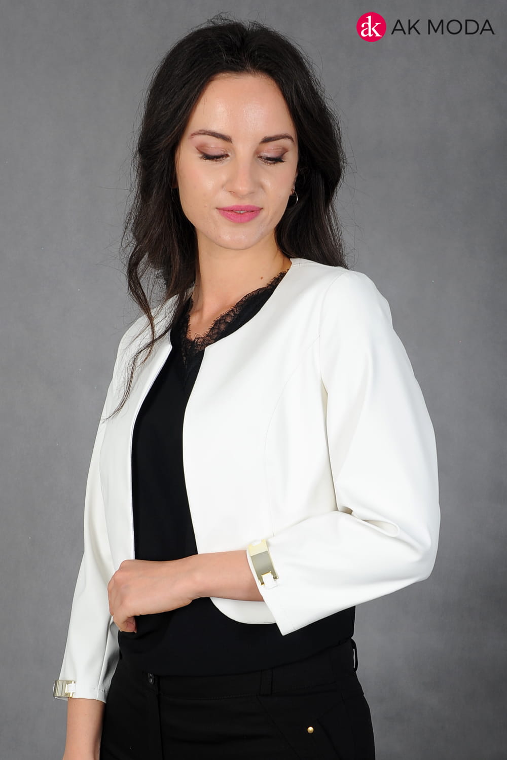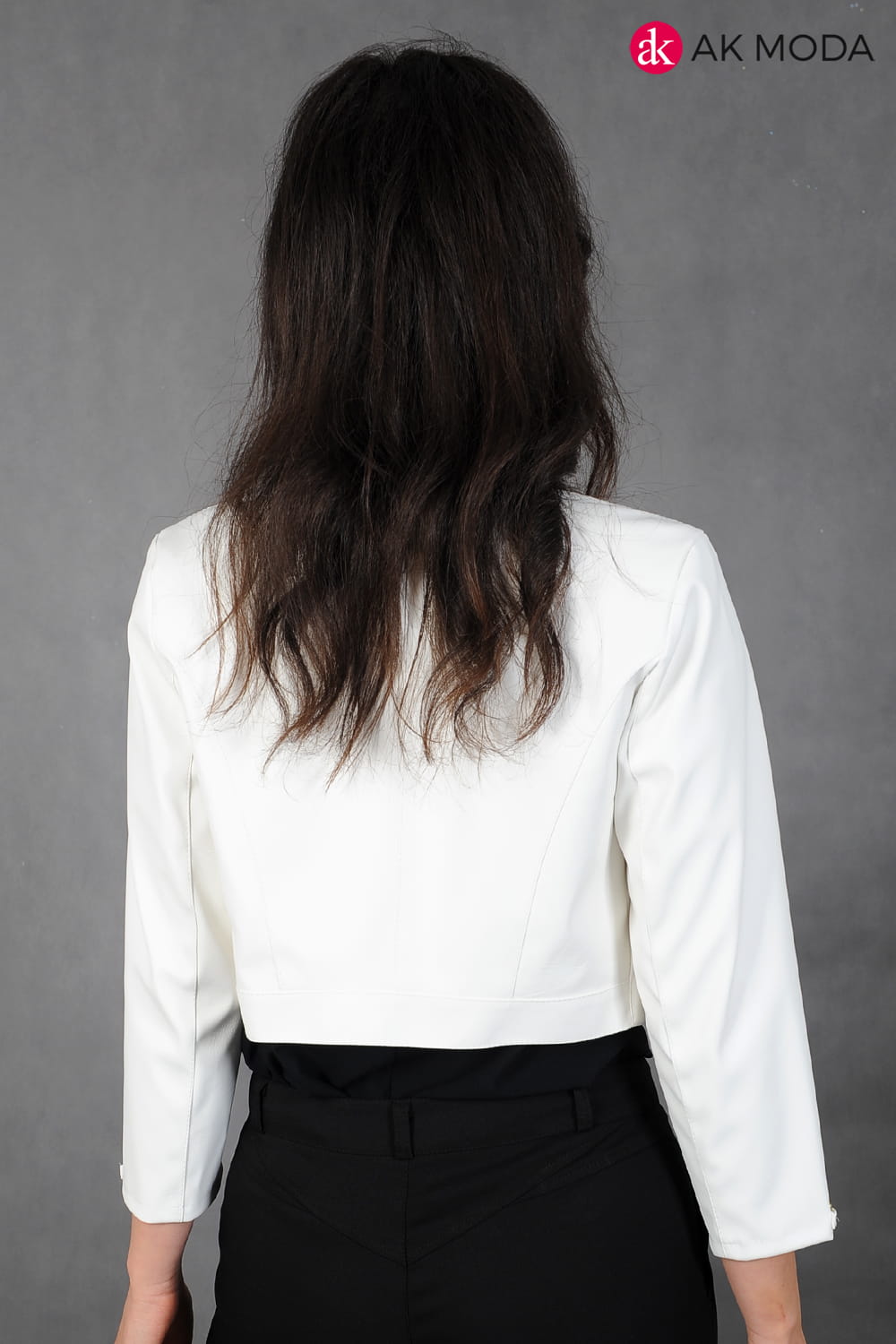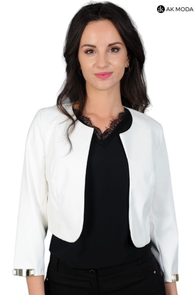Krótkie bolerko w kolorze ecru z rękawami 3/4, skóra ekologiczna.