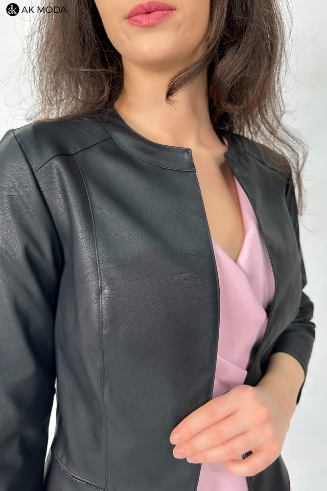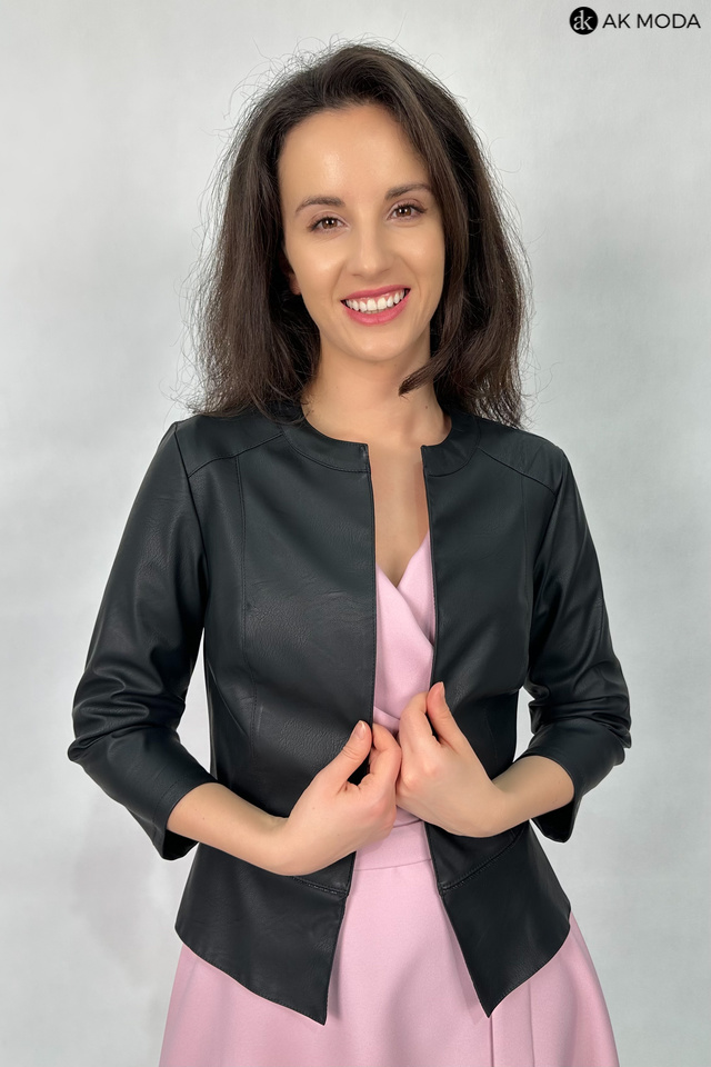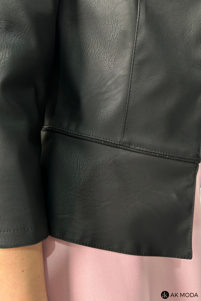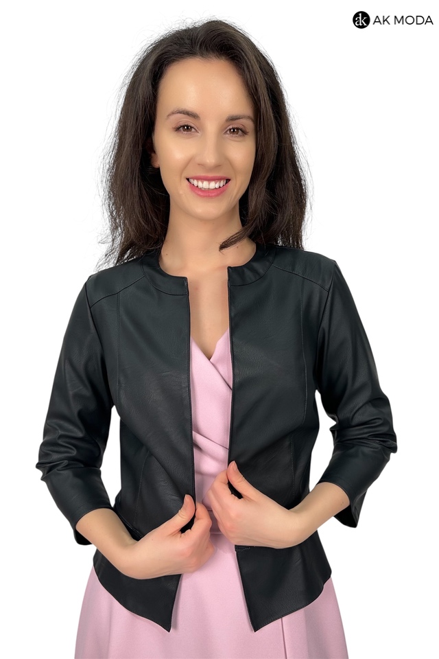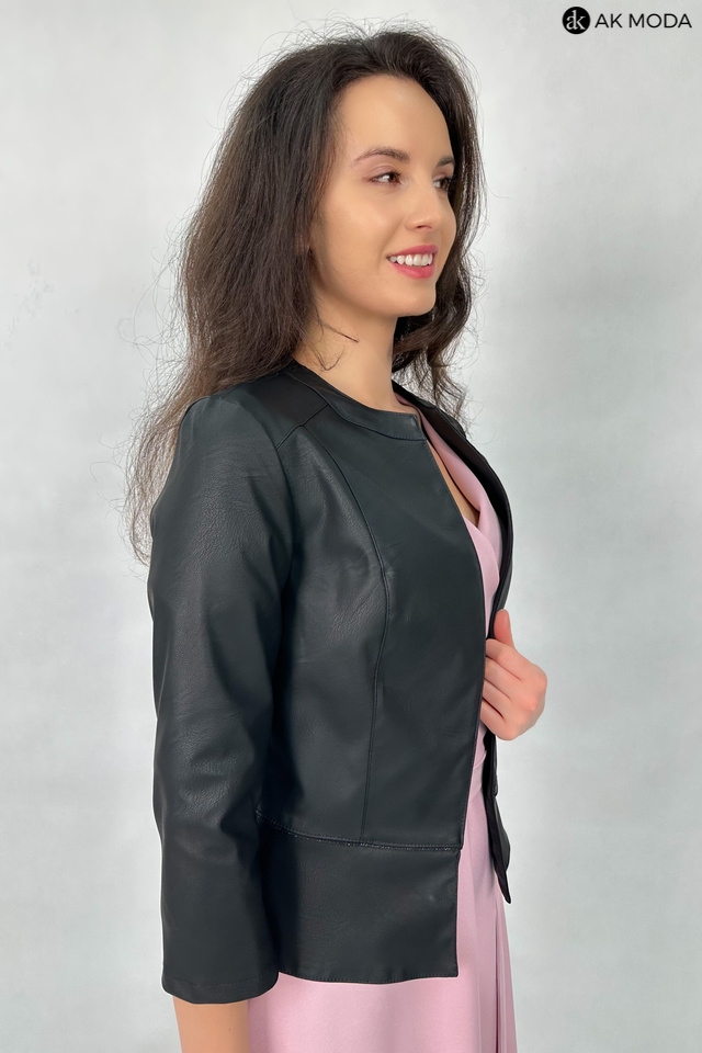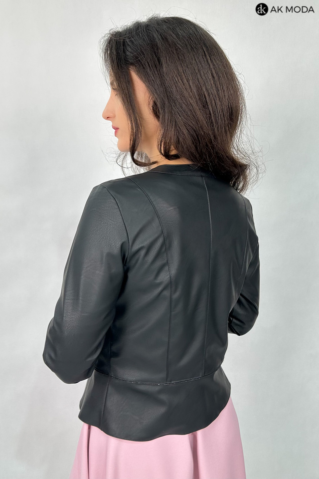 Czarne bolerko z baskinką i rękawem 3/4, skóra ekologiczna.