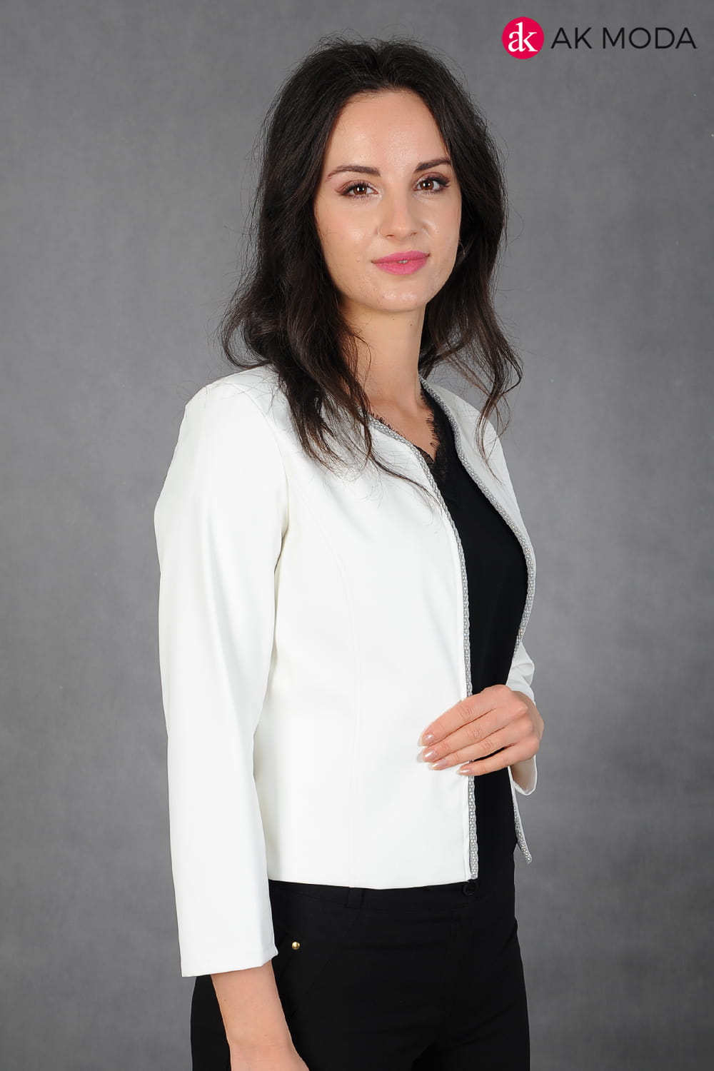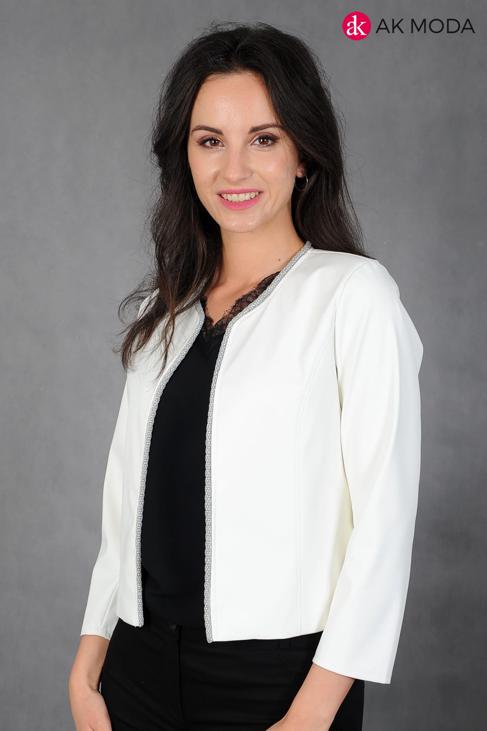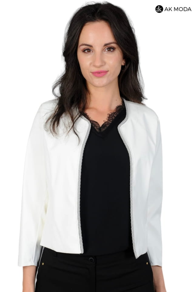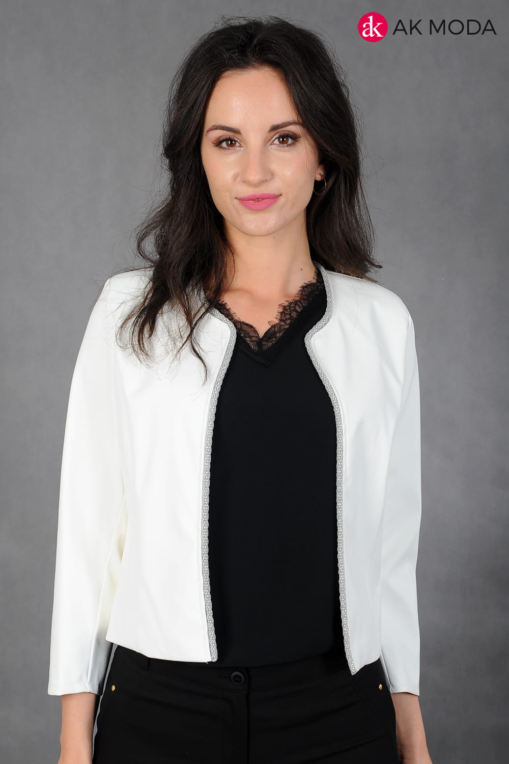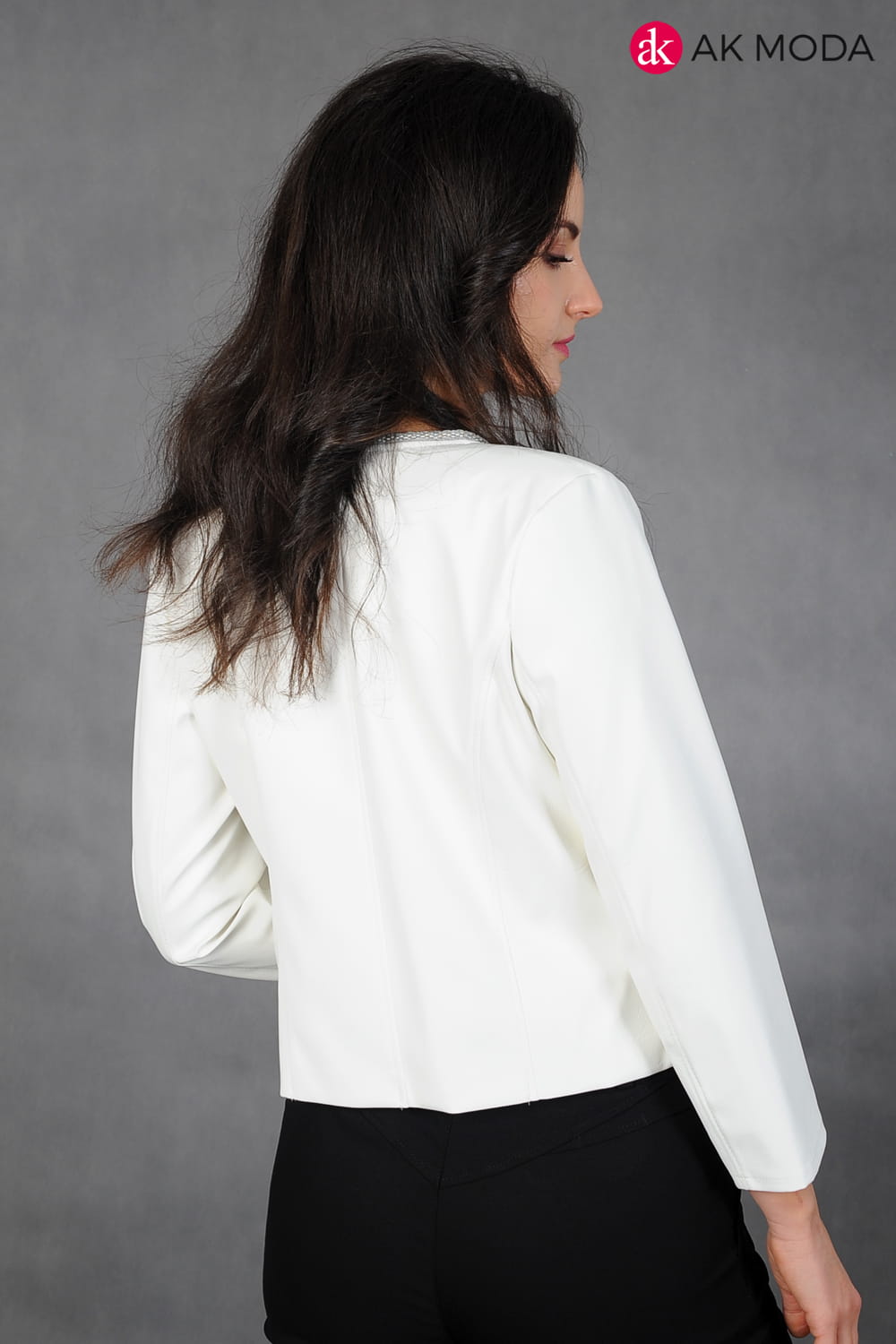 Bolerko z rękawem 3/4 w kolorze ecru, skóra ekologiczna.
