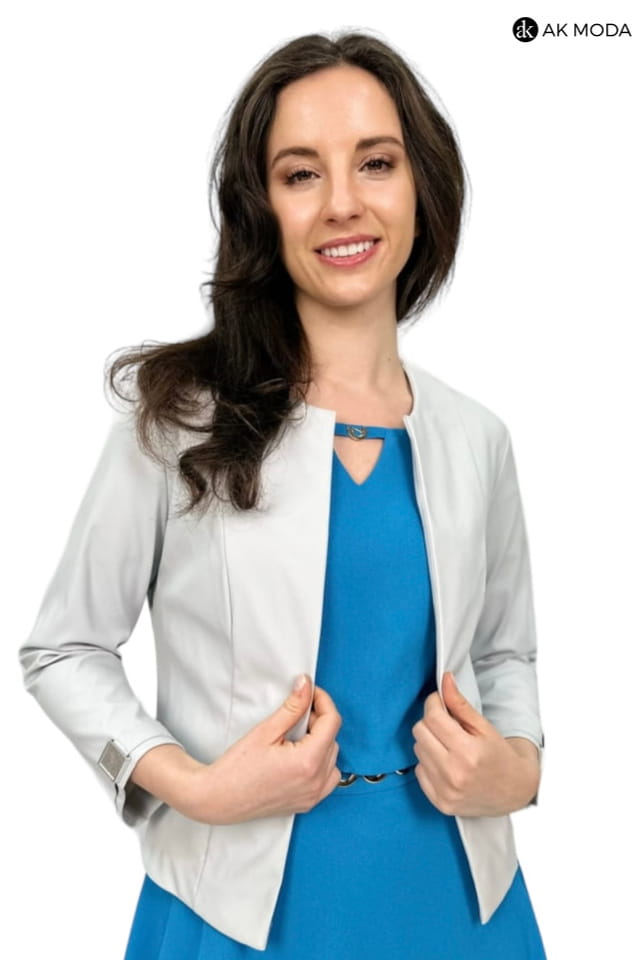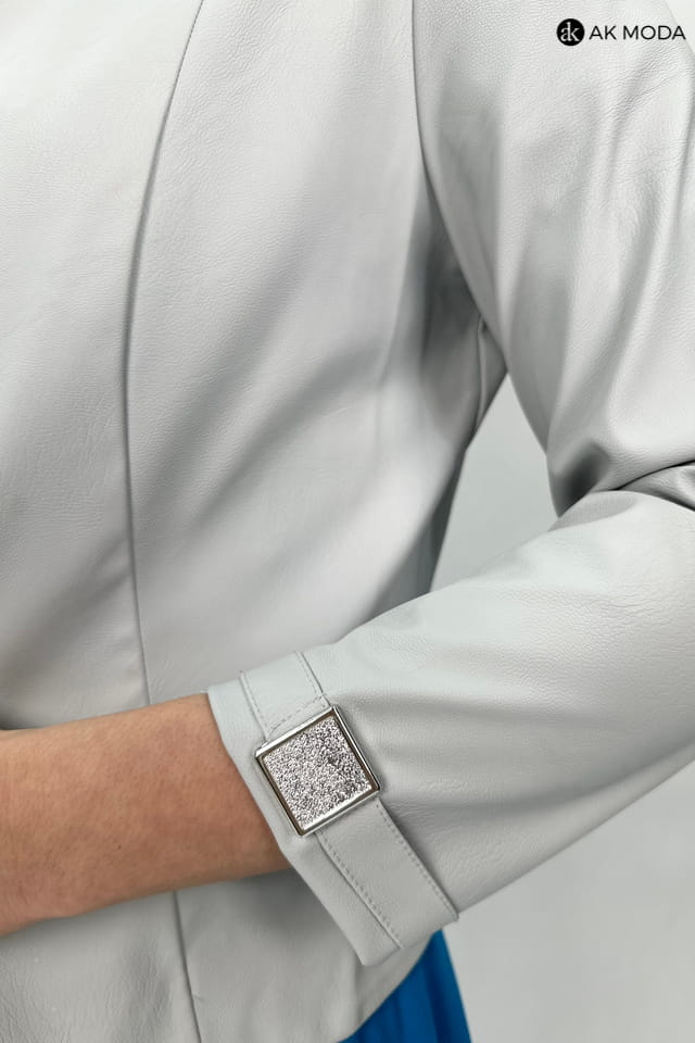 Szare bolerkjo z rękawami 3/4, skóra ekologiczna.