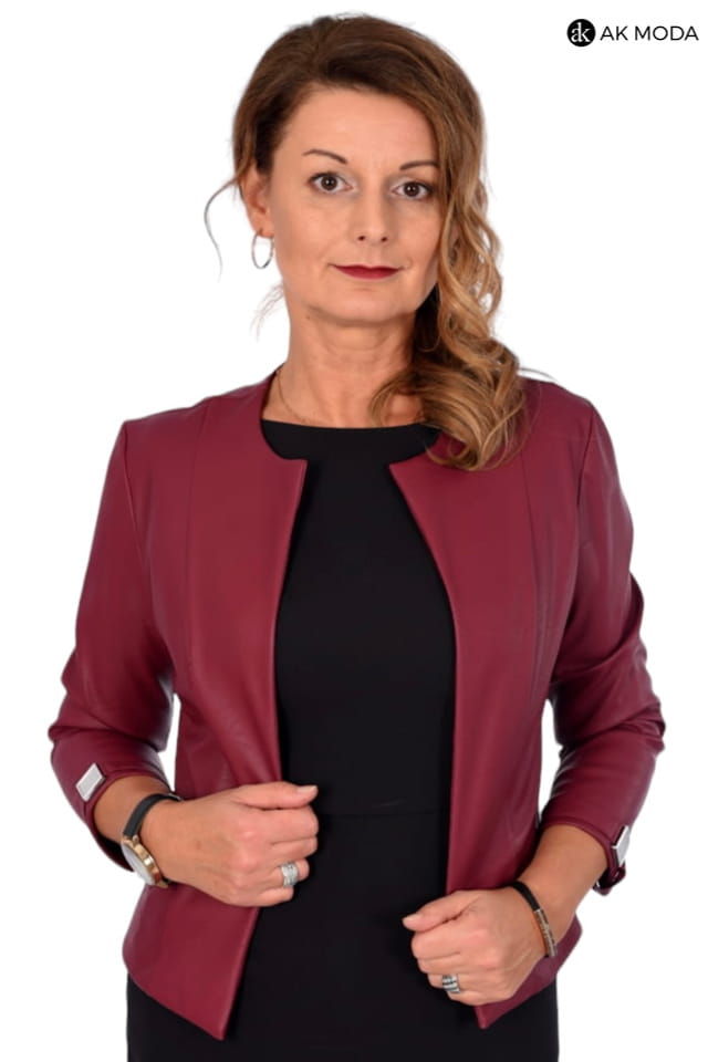 Bolerko bordowe, skóra ekologiczna.