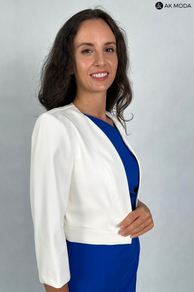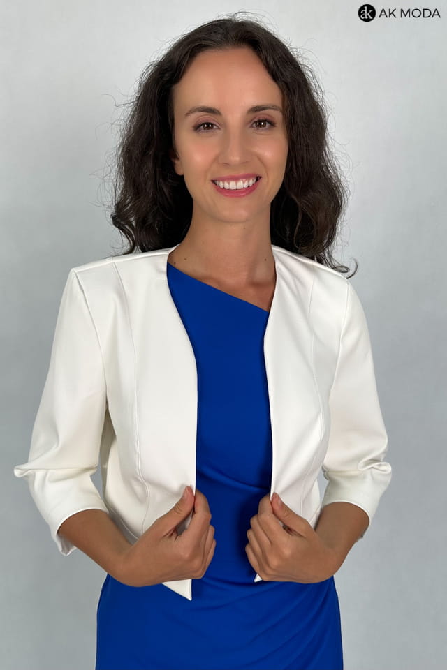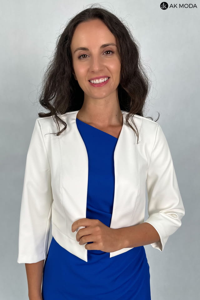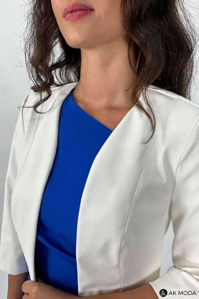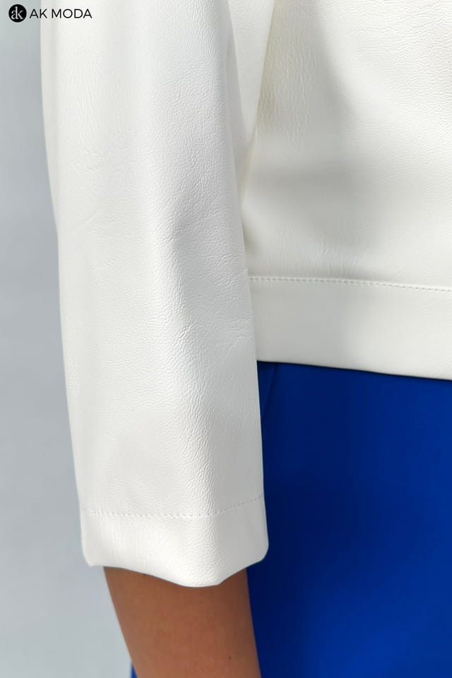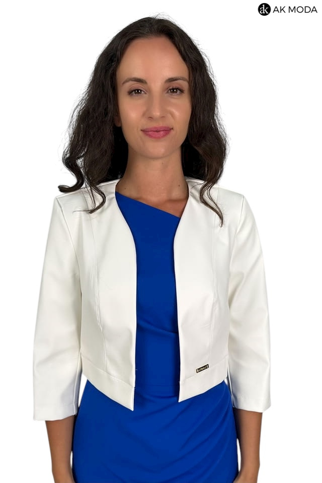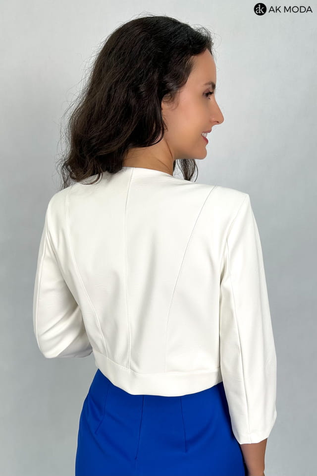 Krótkie bolerko w kolorze śmietankowym z rękawami 3/4, skóra ekologiczna.