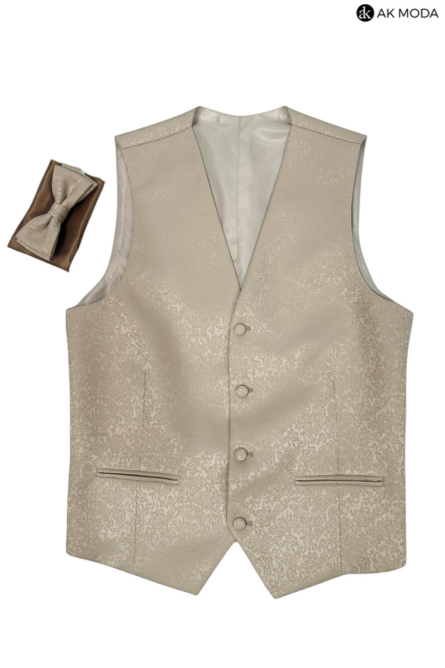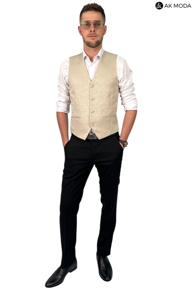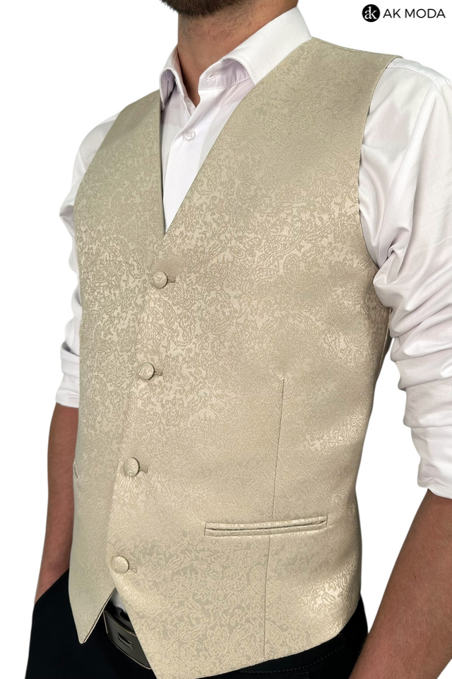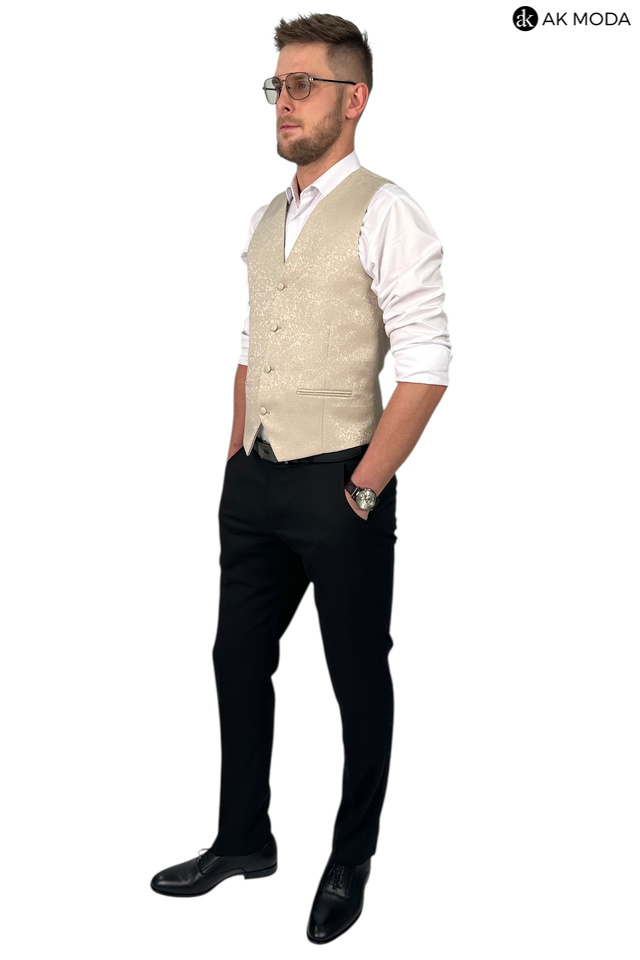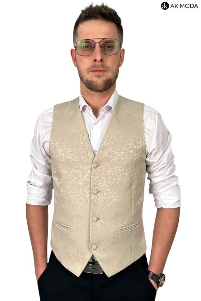 Elegancka, żakardowa kamizelka męska w kolorze beżowym.