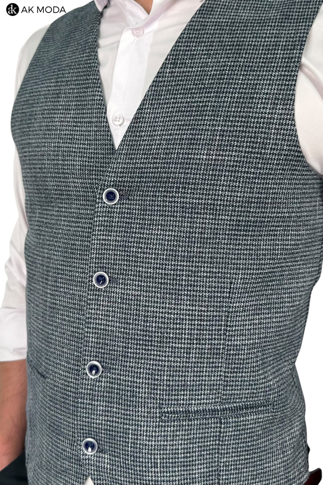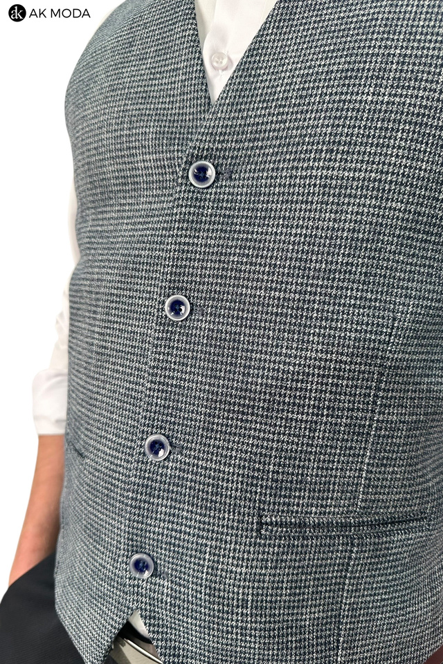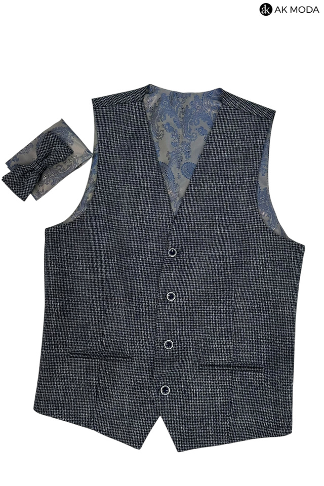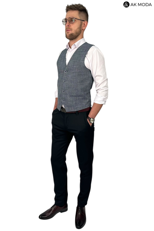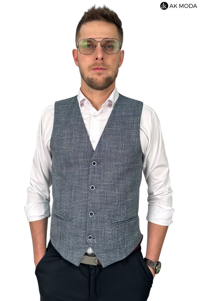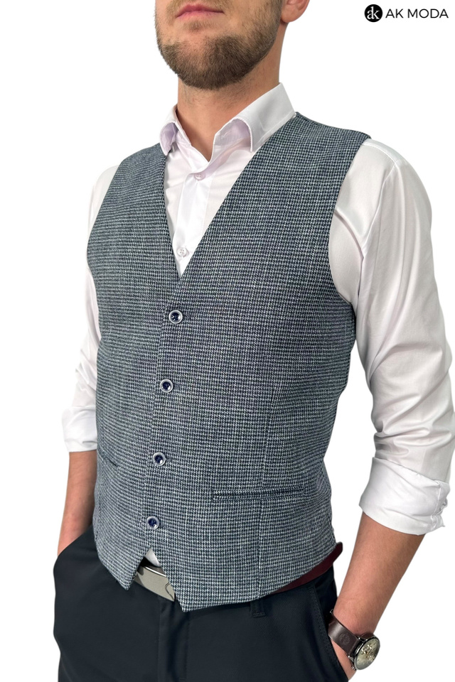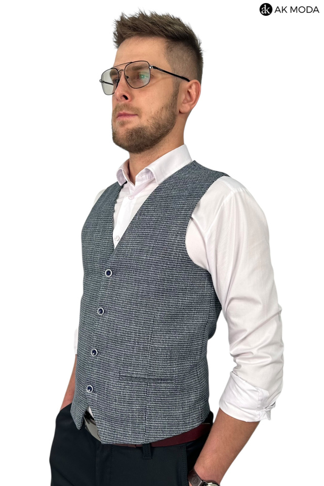 Elegancka kamizelka męska w pepitkę, w kolorze granatowym