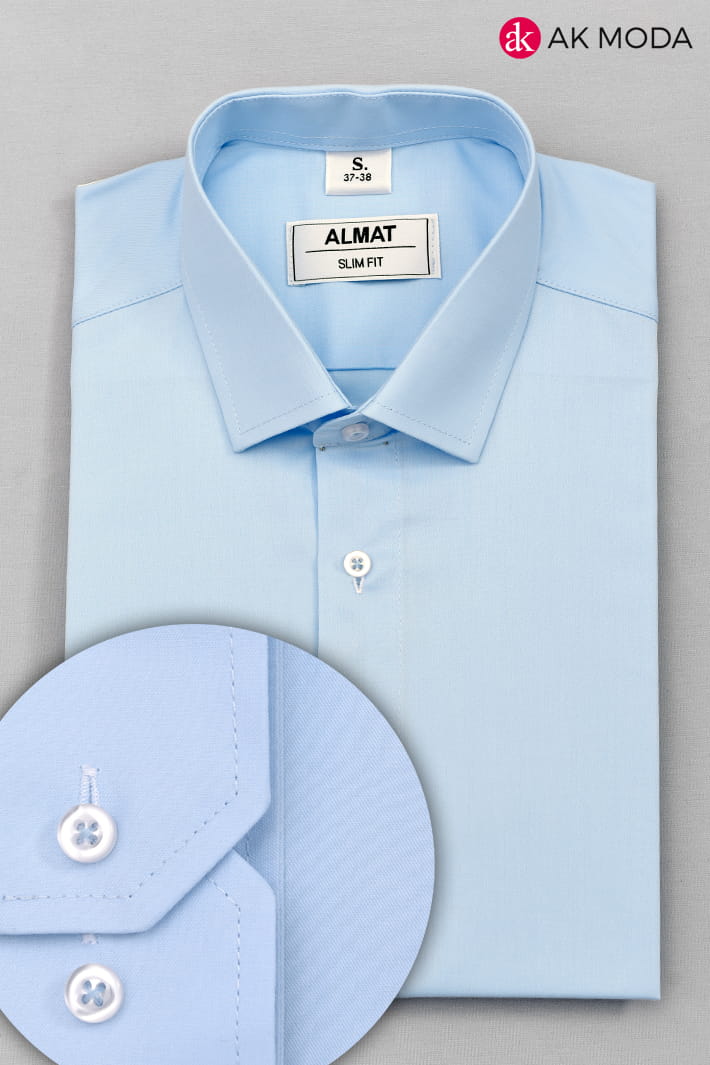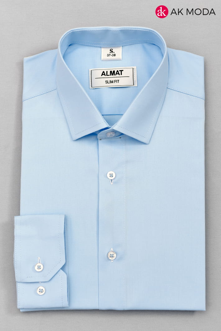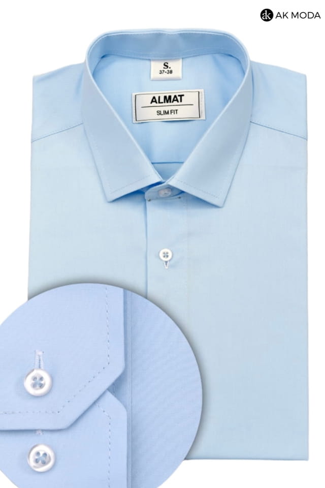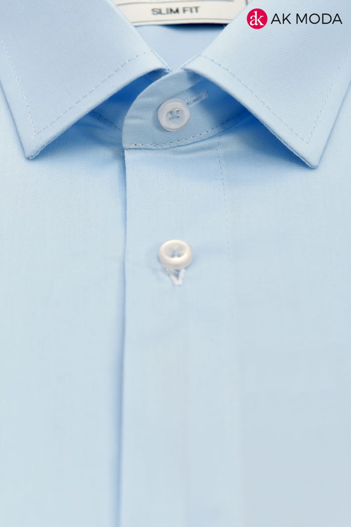 Koszula męska slim fit, jasnoniebieska, z długim rękawem.