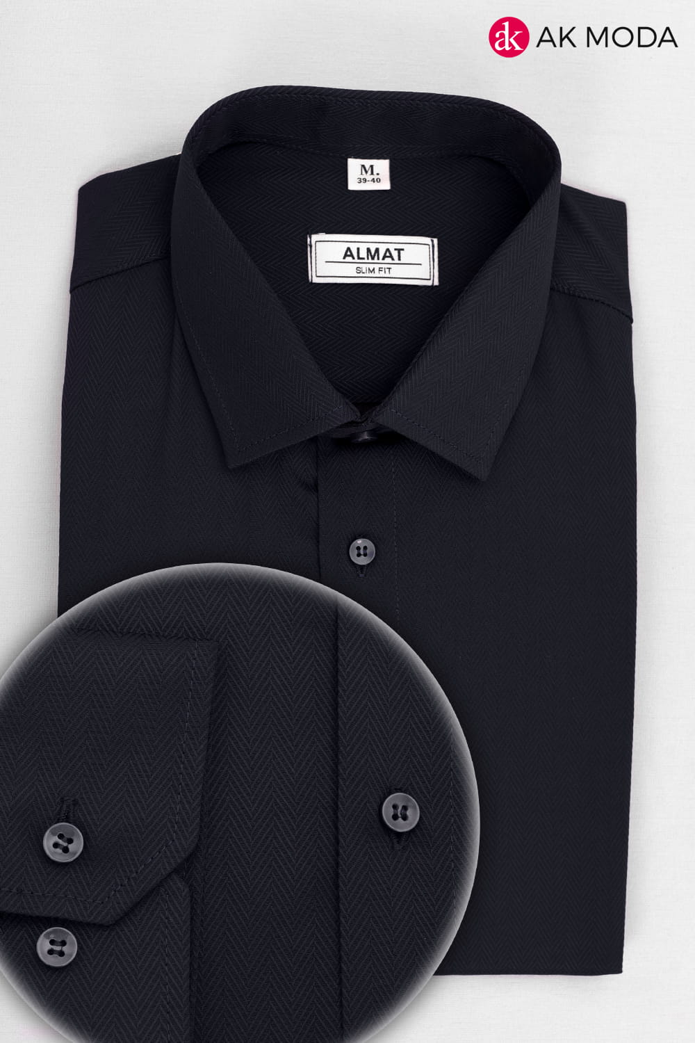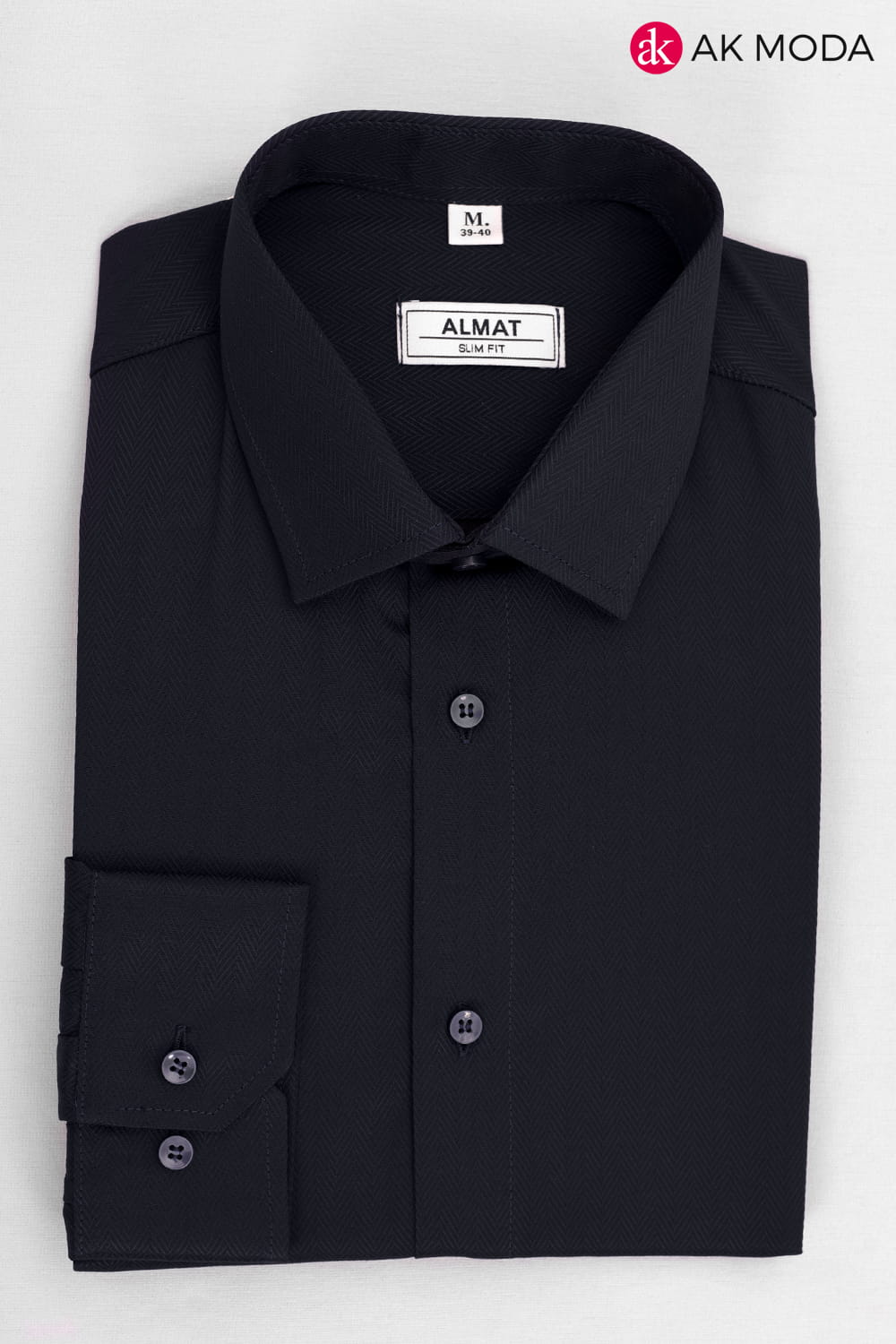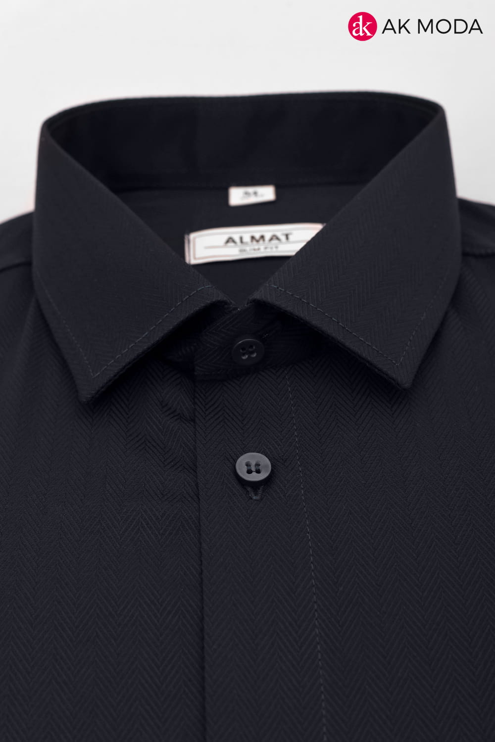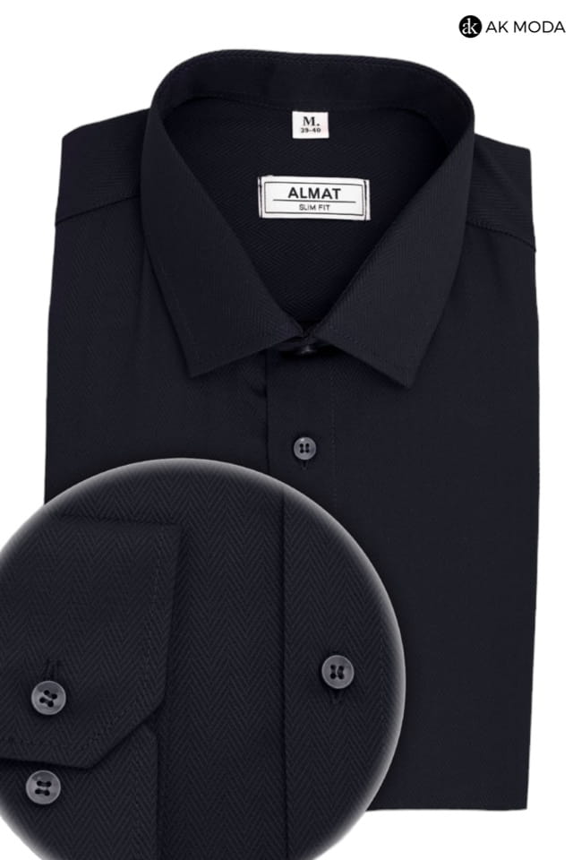 Taliowana koszula męska w kolorze ciemnogranatowym w strukturalny wzór jodełki z długim rękawem.