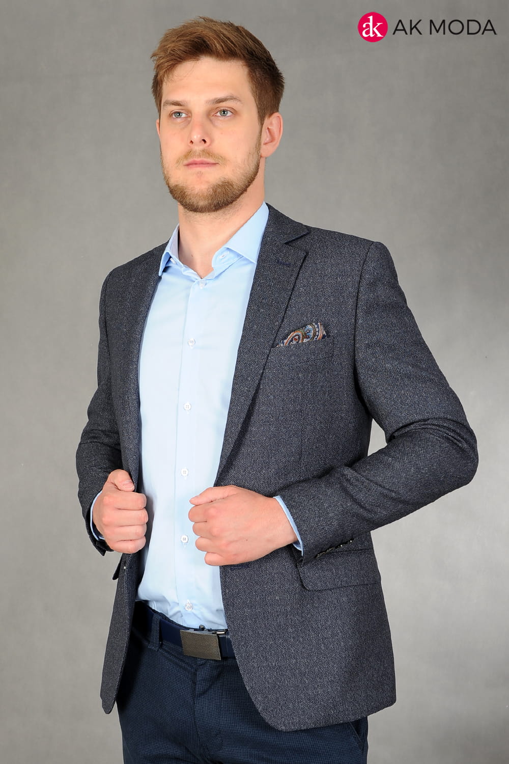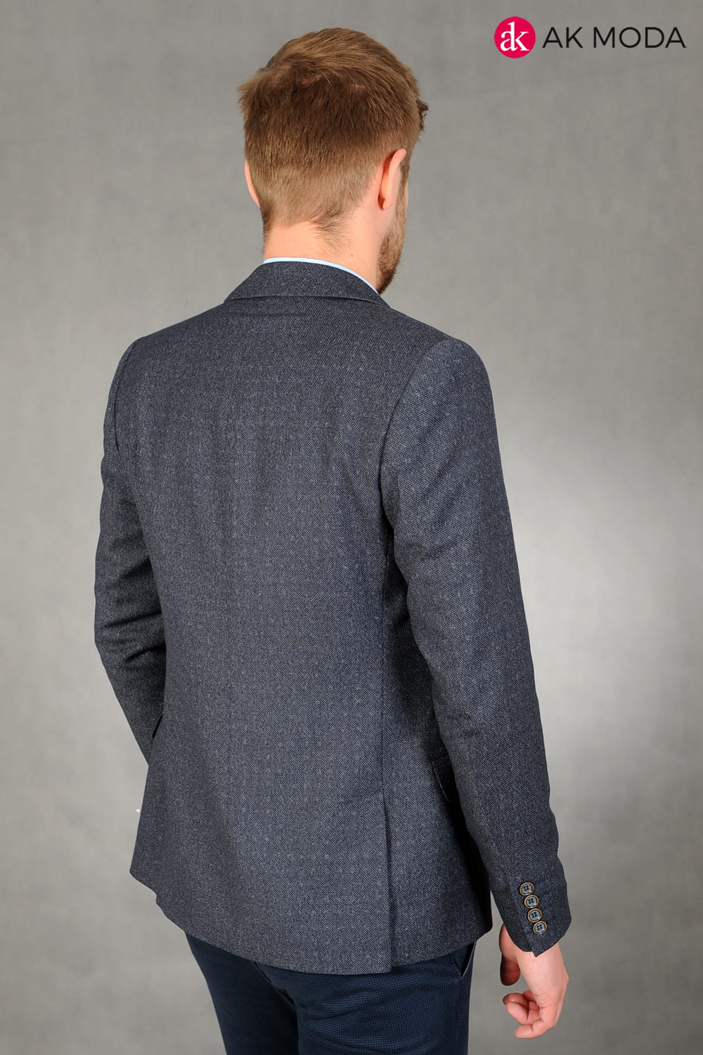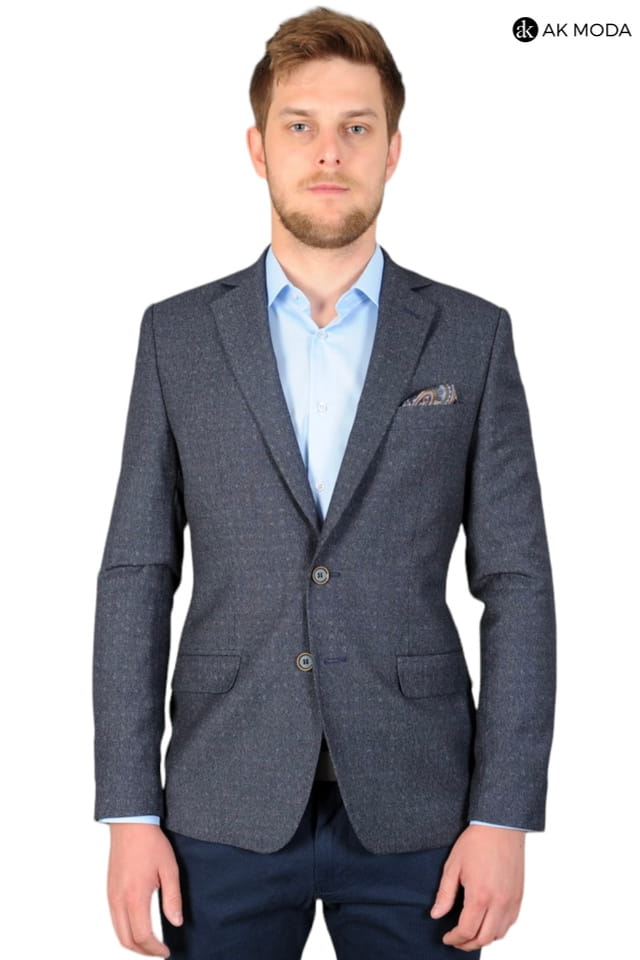 Ciemnoszara marynarka męska uszyta z fakturowanego materiału.
