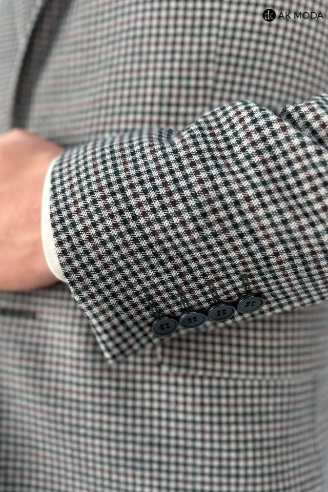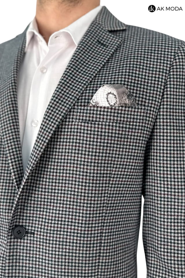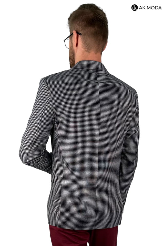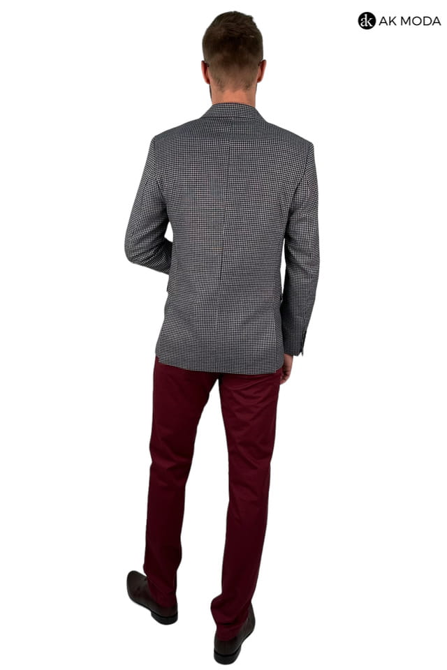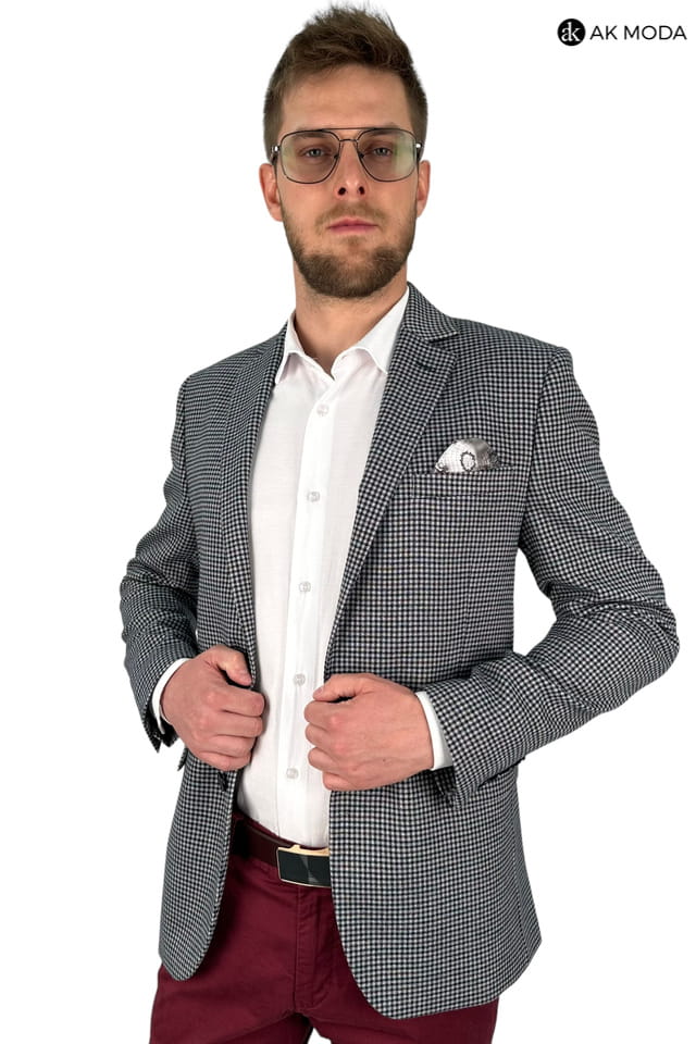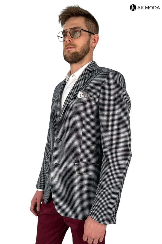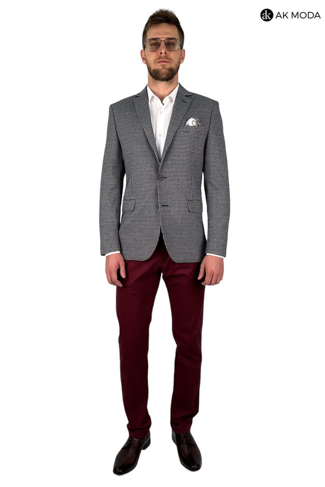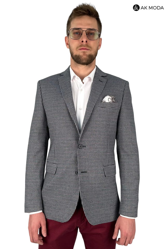 Marynarka męska w granatowo - bordową ktratkę.
