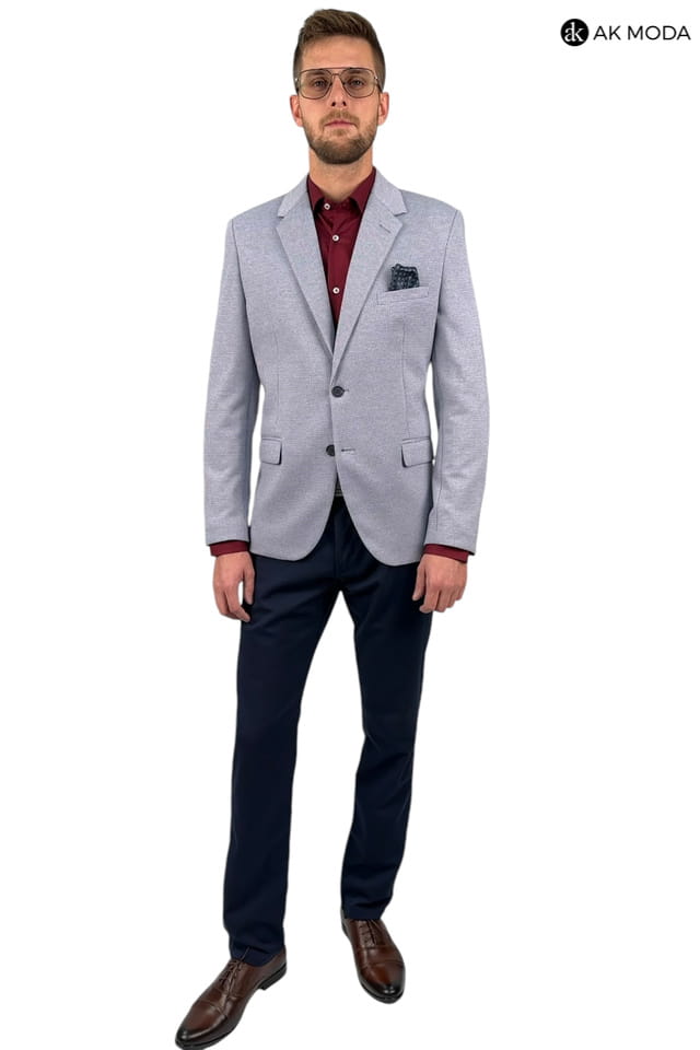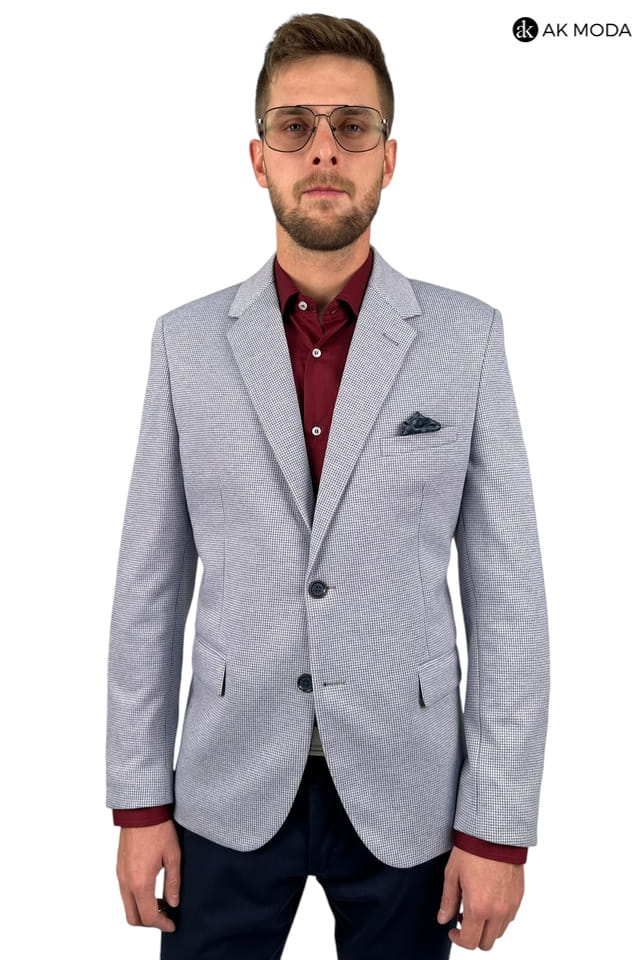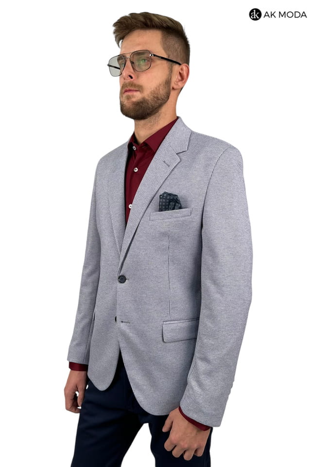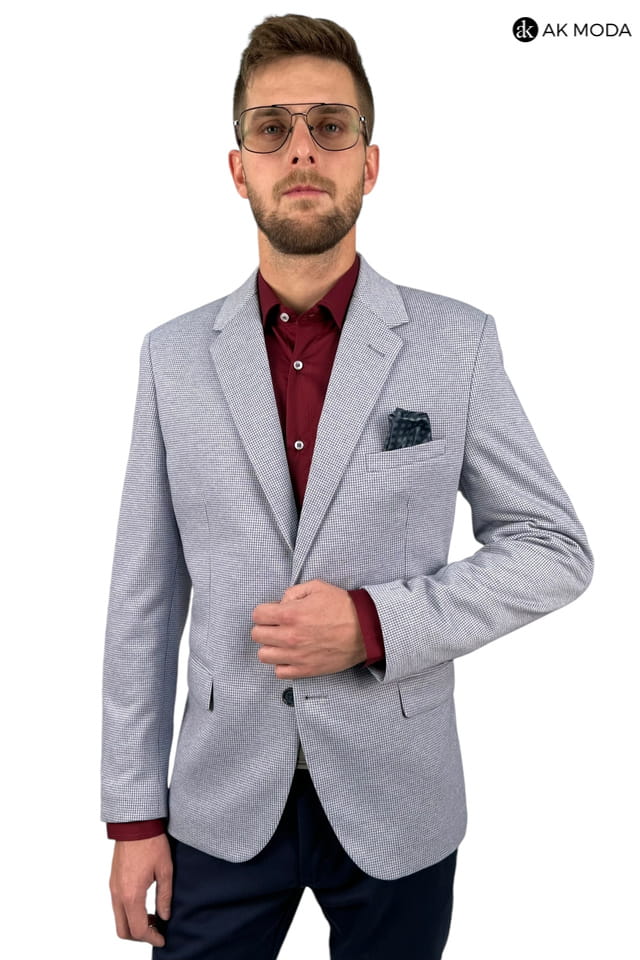 Marynarka męska w niebieską pepitkę.