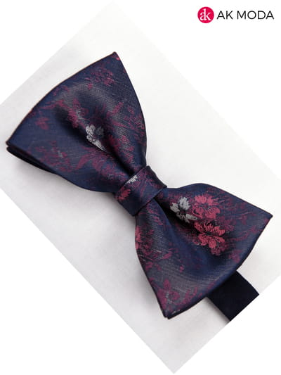 Modna i elegancka granatowa mucha w kwiaty. Wykonana z dobrej jakości tkaniny.