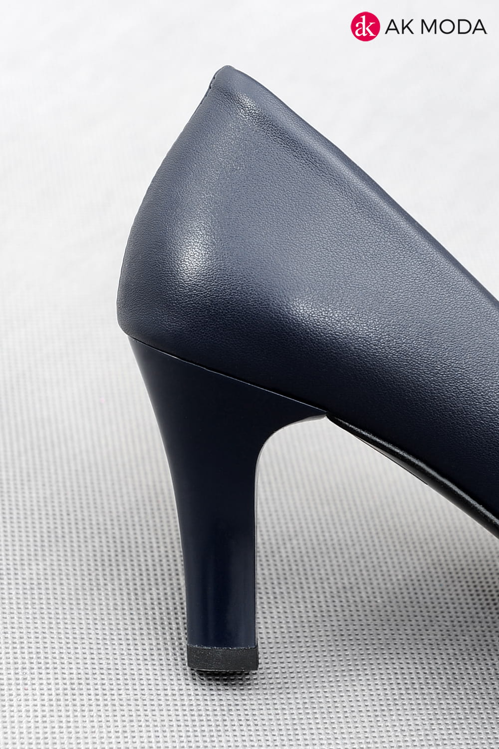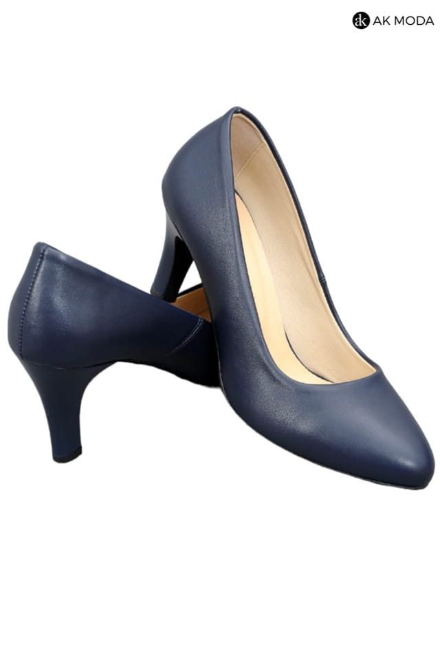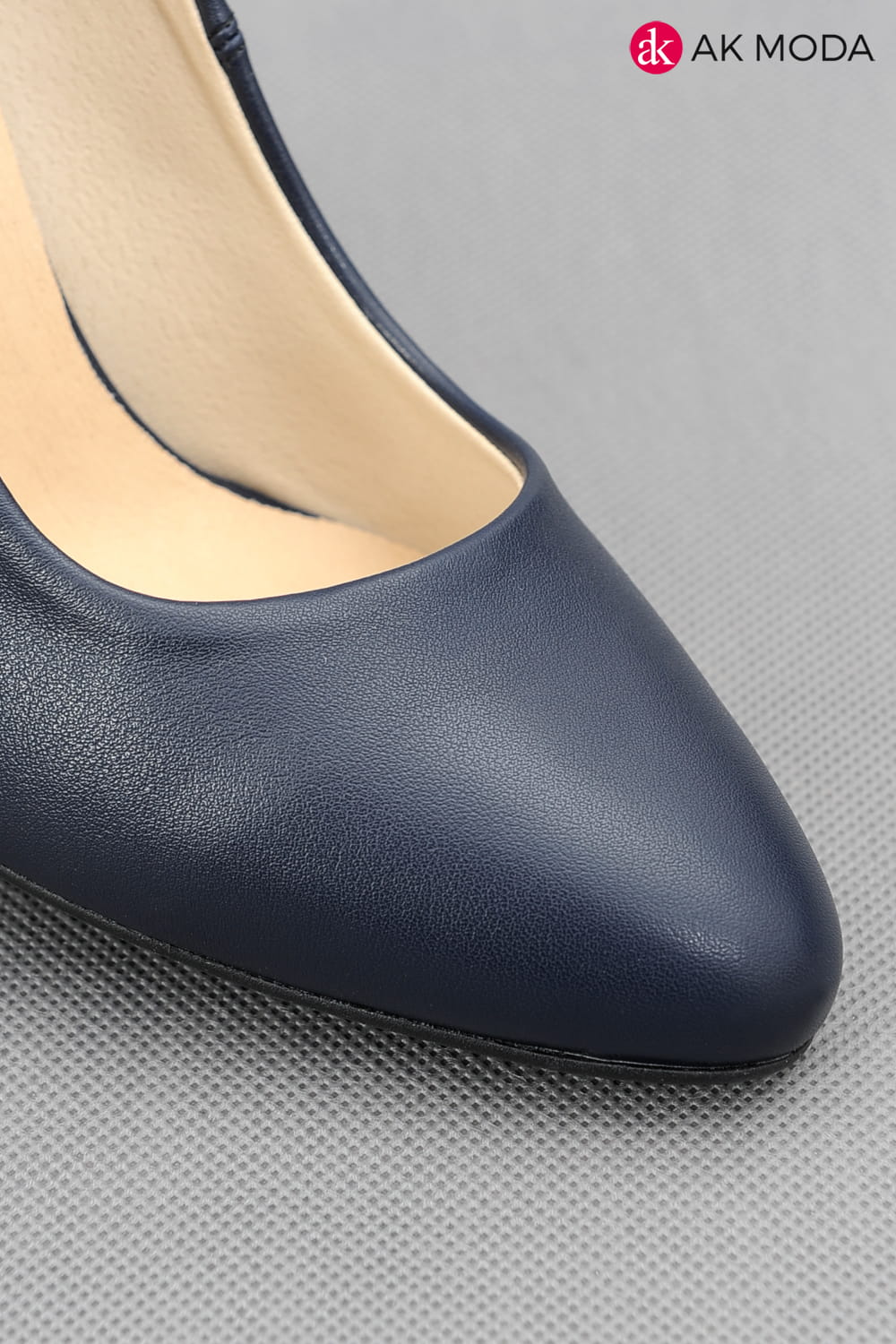 Obuwie damskie w kolorze granatowym, na obcasie.