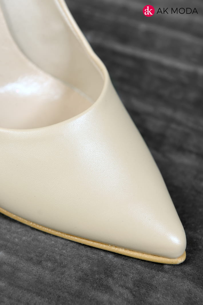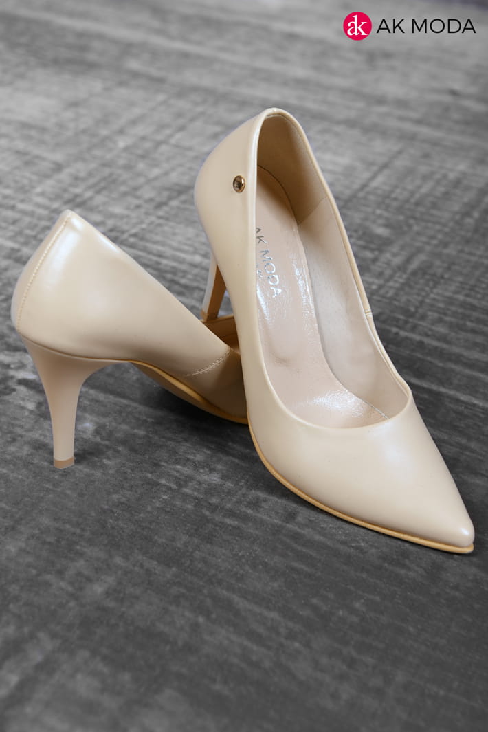 Obuwie damskie w beżowym kolorze z noskiem w szpic.