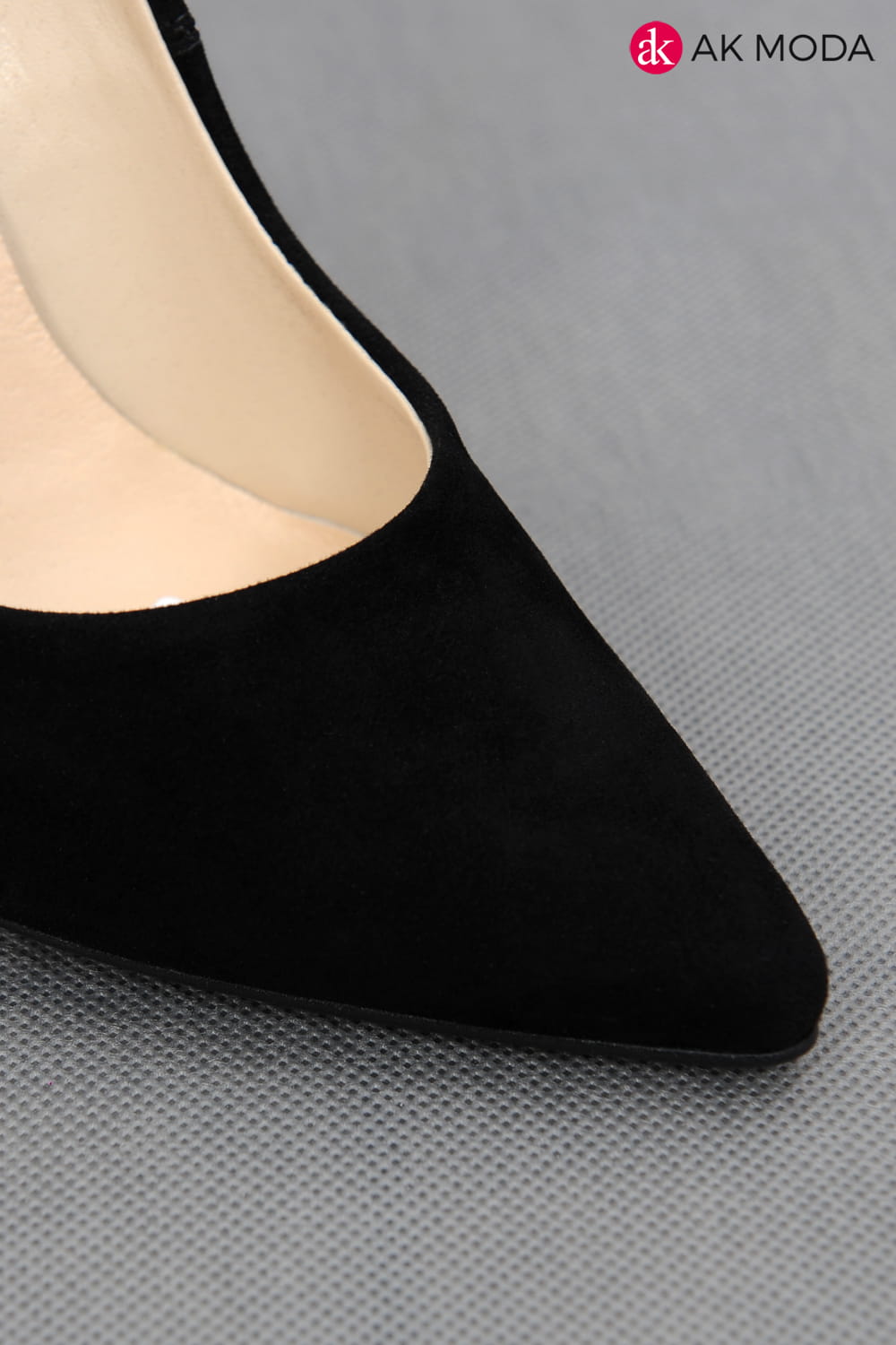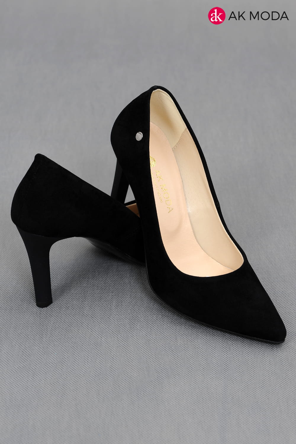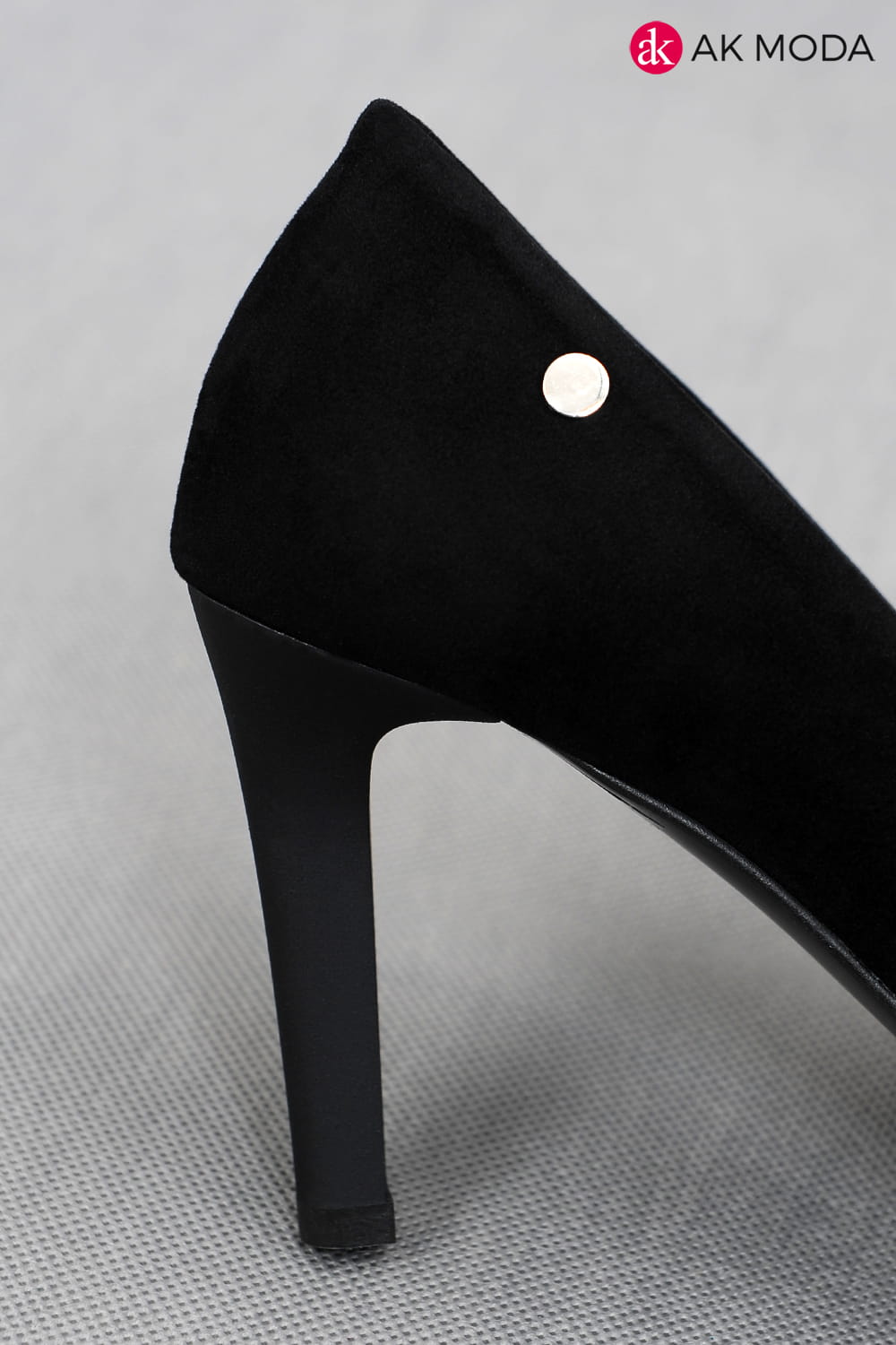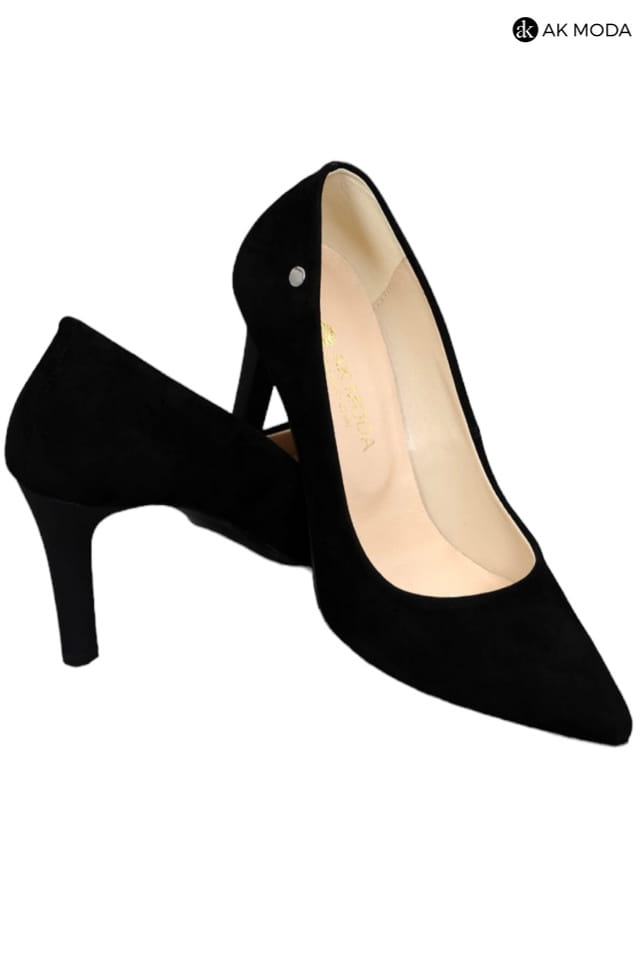 Obuwie damskie zamszowe w kolorze czarnym, na obcasie.