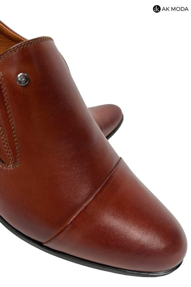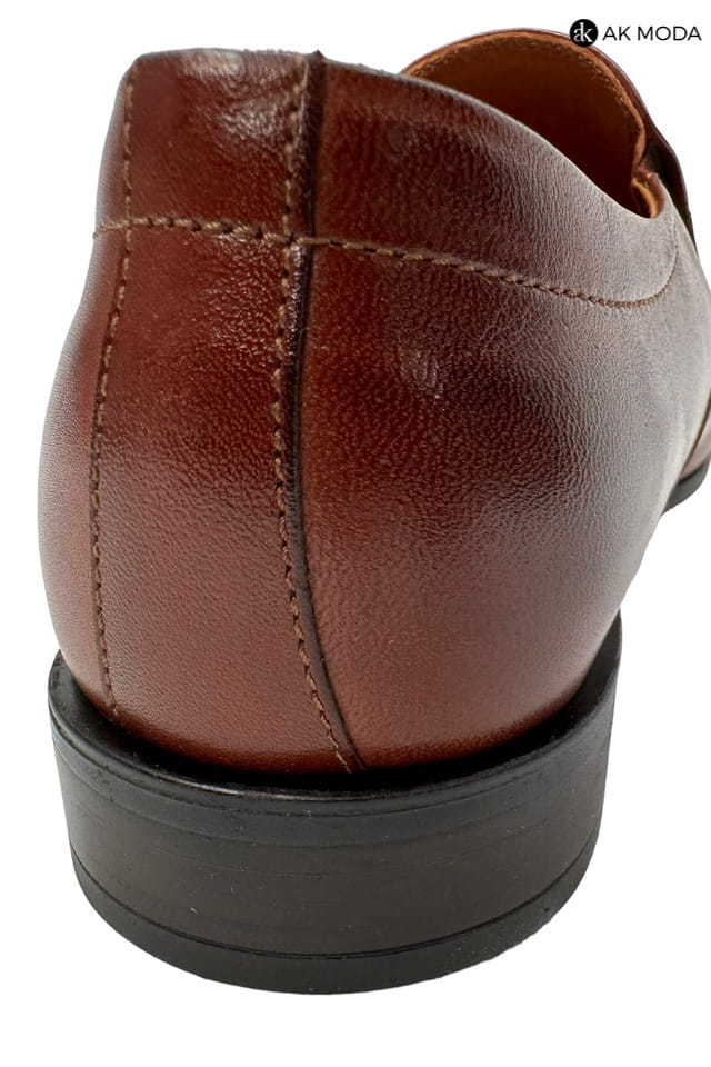Eleganckie męskie mokasyny w kolorze brązowym. Wykonane w całości ze skóry naturalnej zapewnią komfort i wygodę chodzenia.