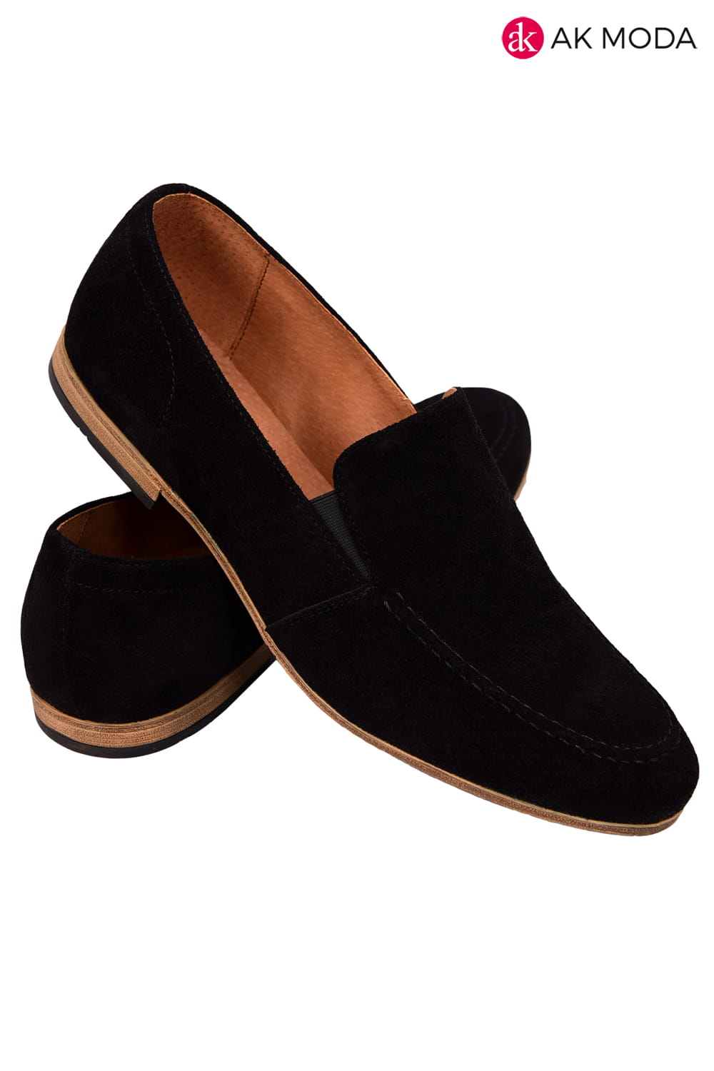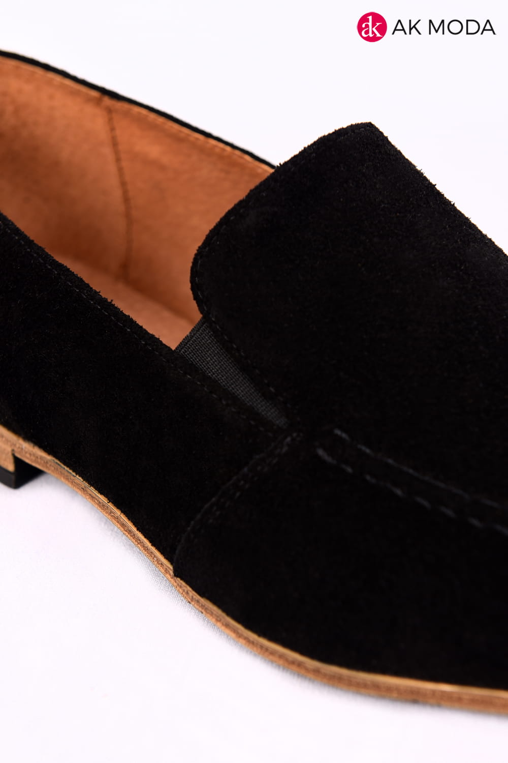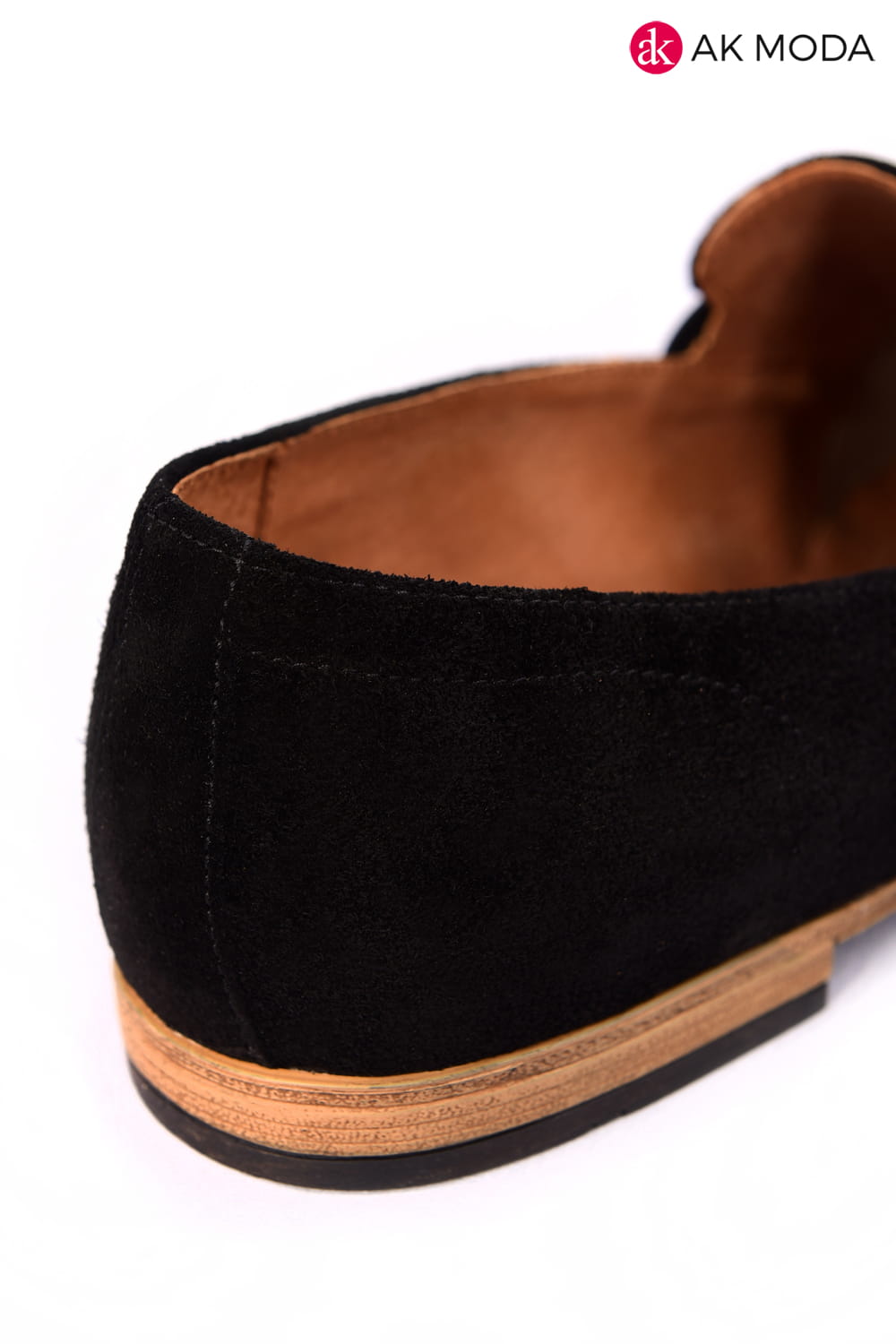Zamszowe mokasyny męskie w kolorze czarnym. Wykonane w całości ze skóry naturalnej.