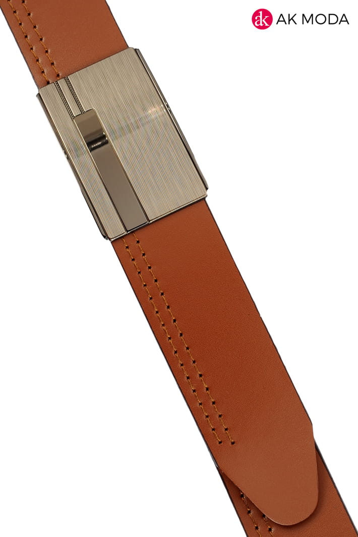 Elegancki skórzany męski pasek w kolorze brązowym z przeszyciem. Łatwo regulowana automatyczna klamra. Możliwość skrócenia.