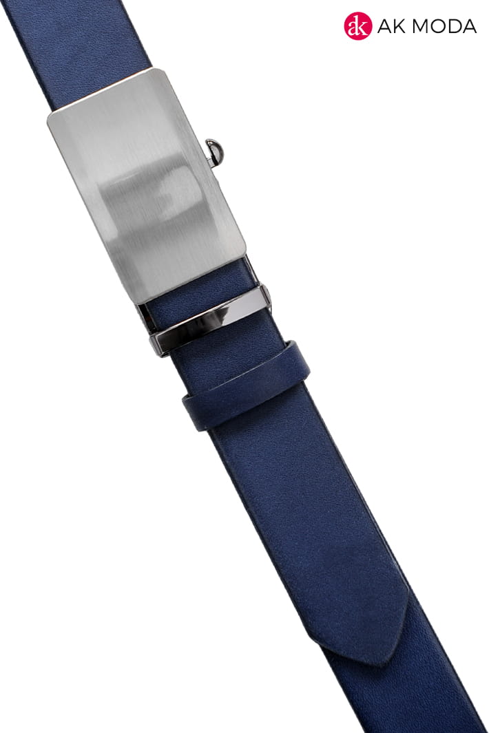 Elegancki, gładki skórzany męski pasek w kolorze granatowym. Łatwo regulowana automatyczna klamra. Możliwość skrócenia.