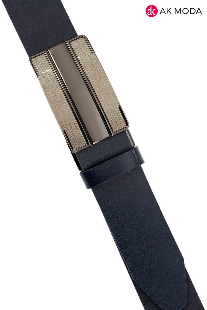 Elegancki skórzany męski pasek w kolorze granatowym. Łatwo regulowana automatyczna klamra. Możliwość skrócenia.