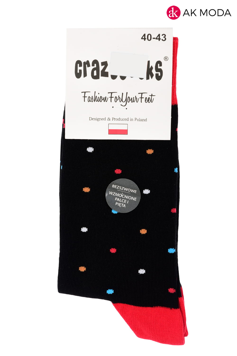 Skarpety męskie czarne w kolorowe kropki.