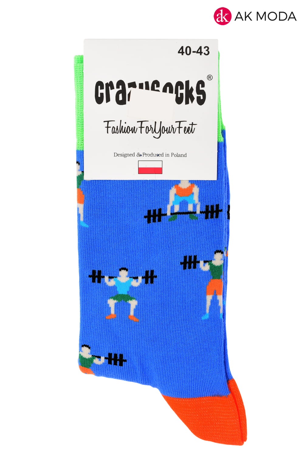 Skarpety męskie niebieskie z motywem siłaczy.