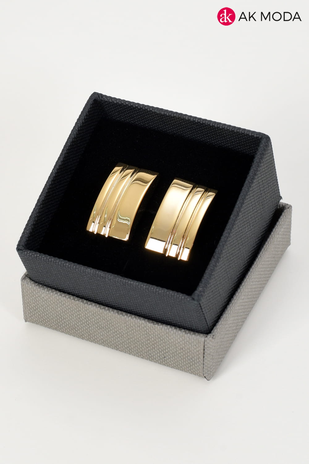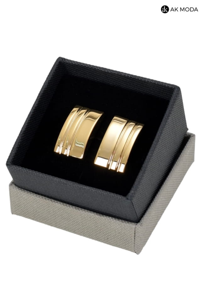 Klasyczne i eleganckie prostokątne spinki do mankietów w złotym kolorze z grawerem.