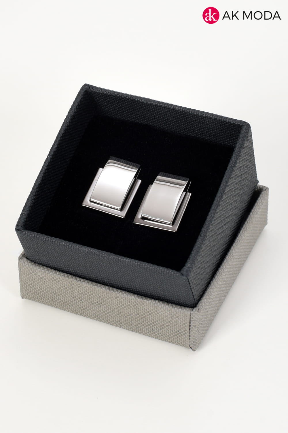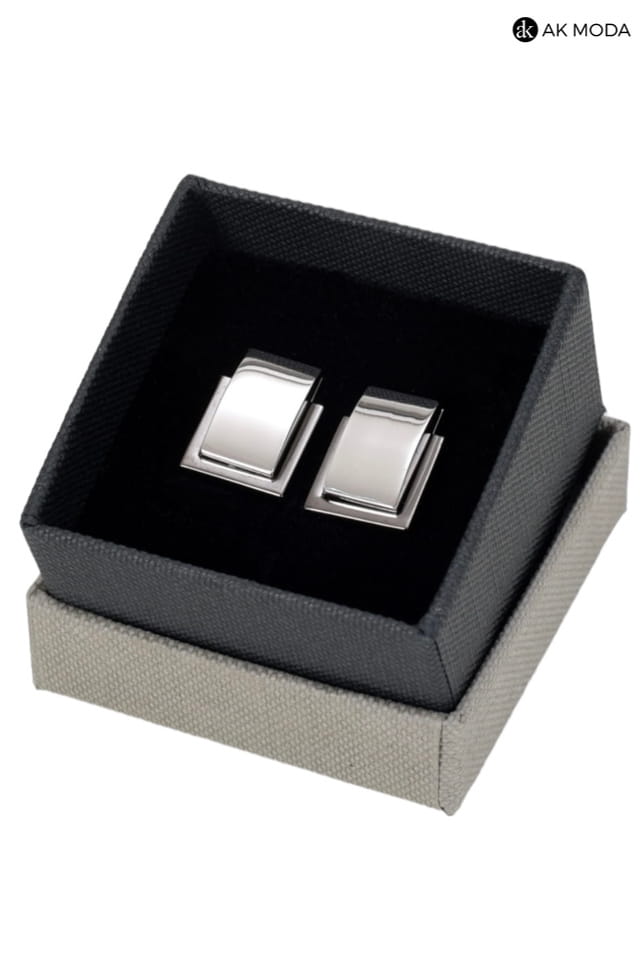 Eleganckie grafitowo - srebrne spinki do mankietów w kształcie prostokątów.