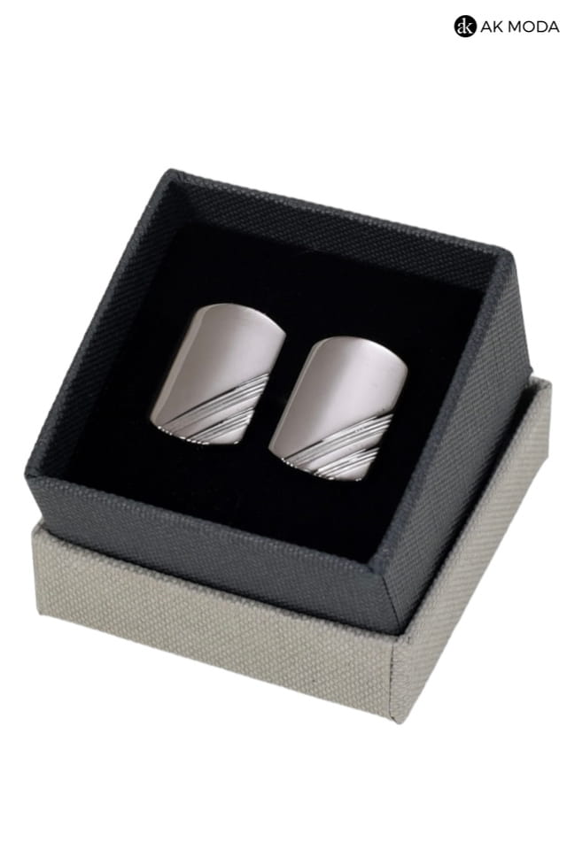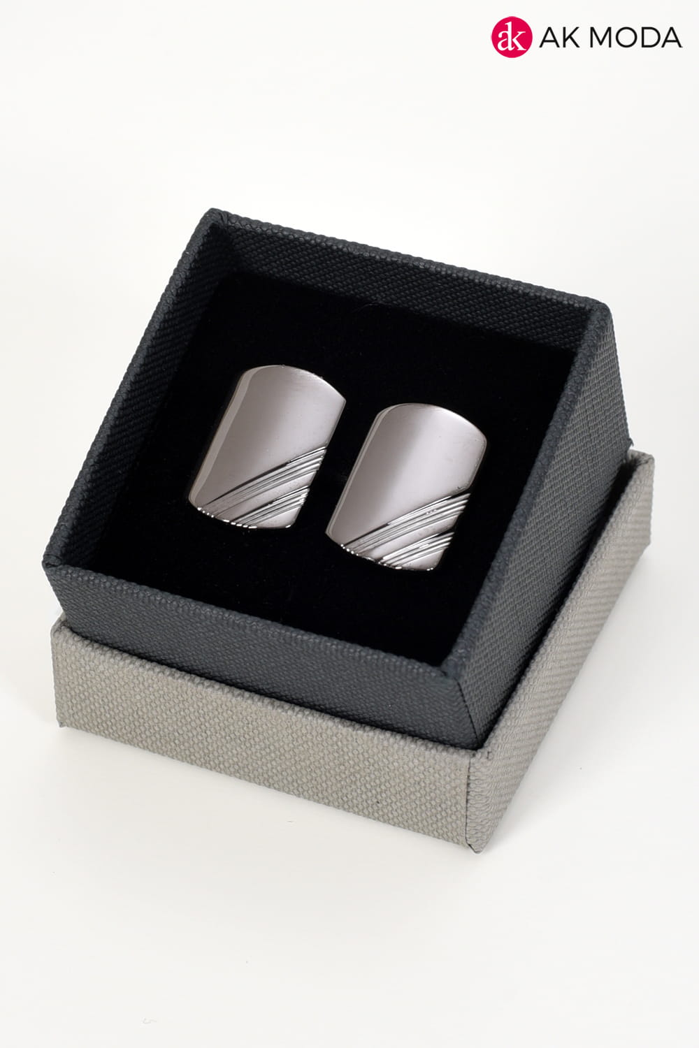 Prostokątne lekko zaokrąglone spinki do mankietów w grafitowym kolorze z ukośnym grawerem.