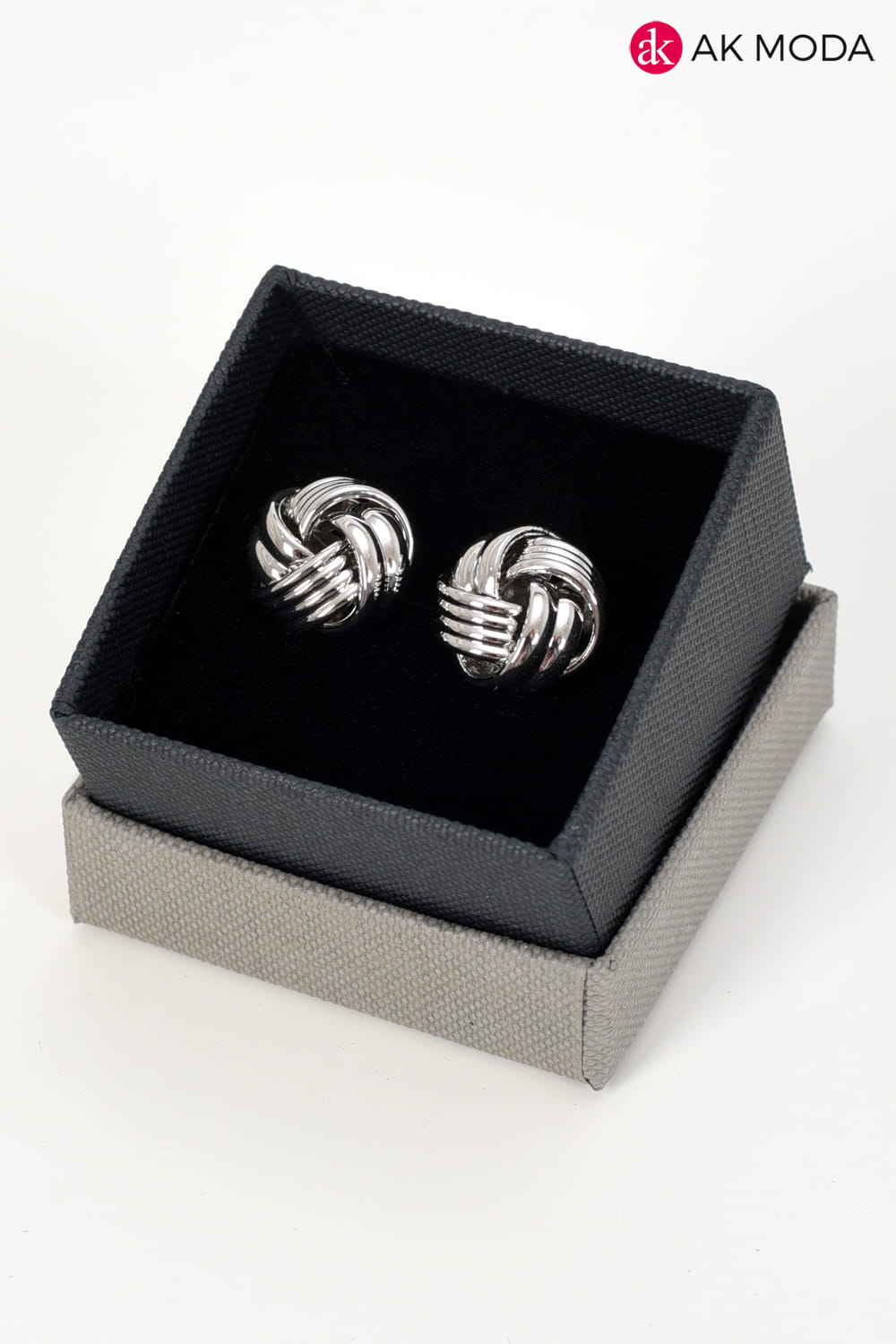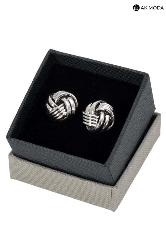 Eleganckie spinki do mankietów w srebrnym kolorze.