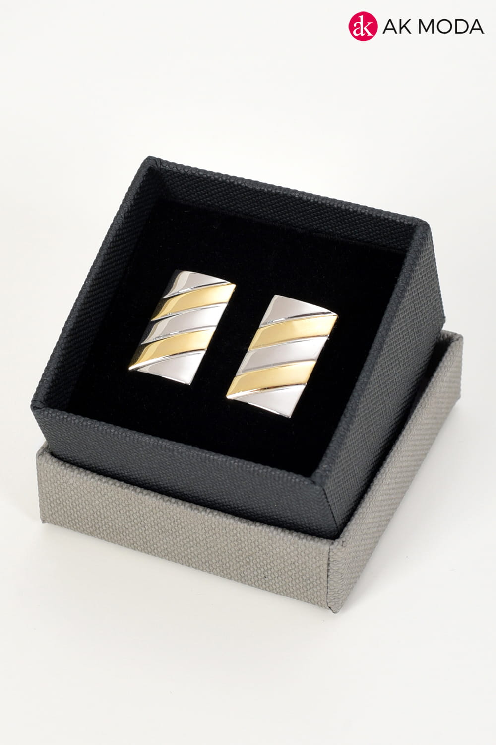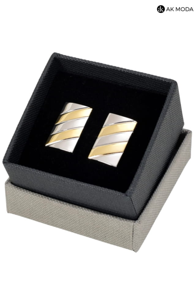 Klasyczne i eleganckie prostokątne spinki do mankietów w srebrno - złotym kolorze.