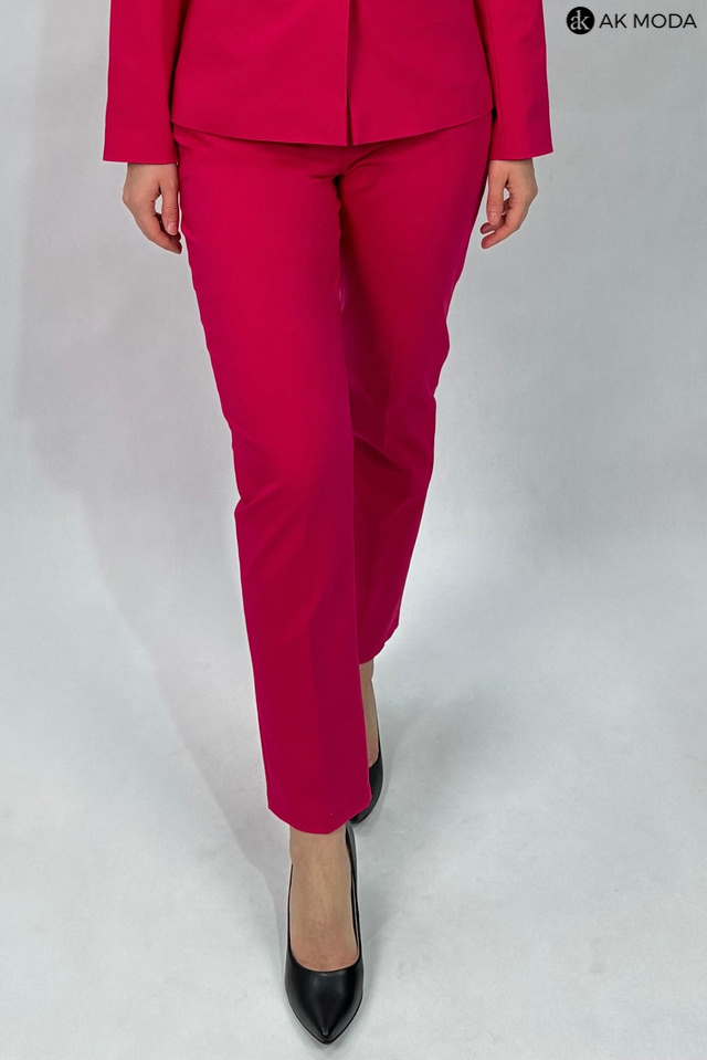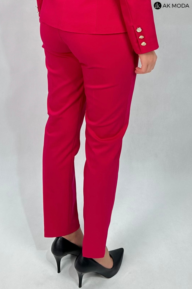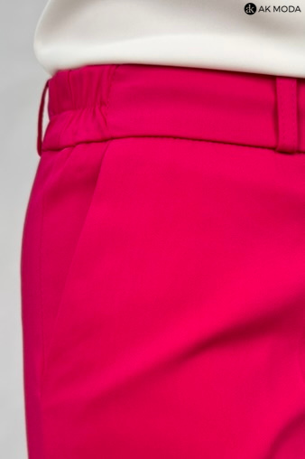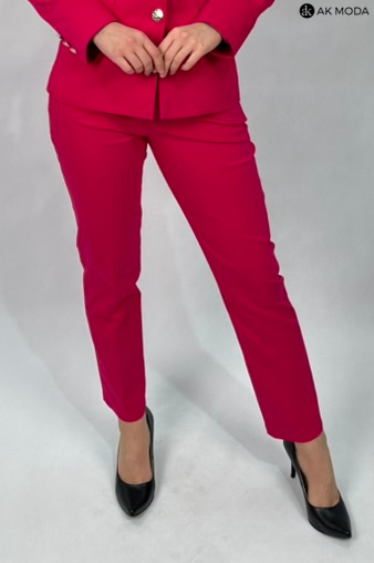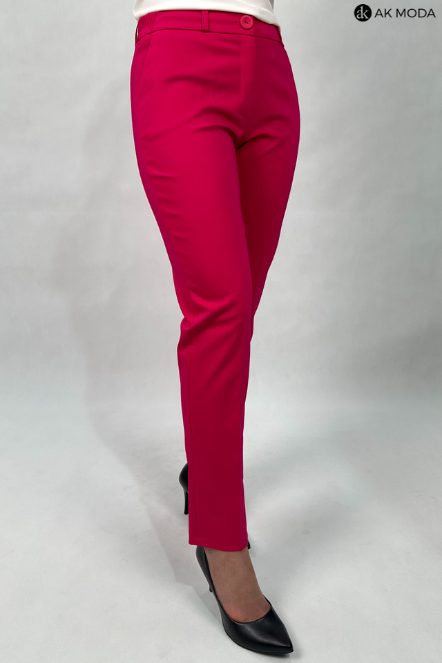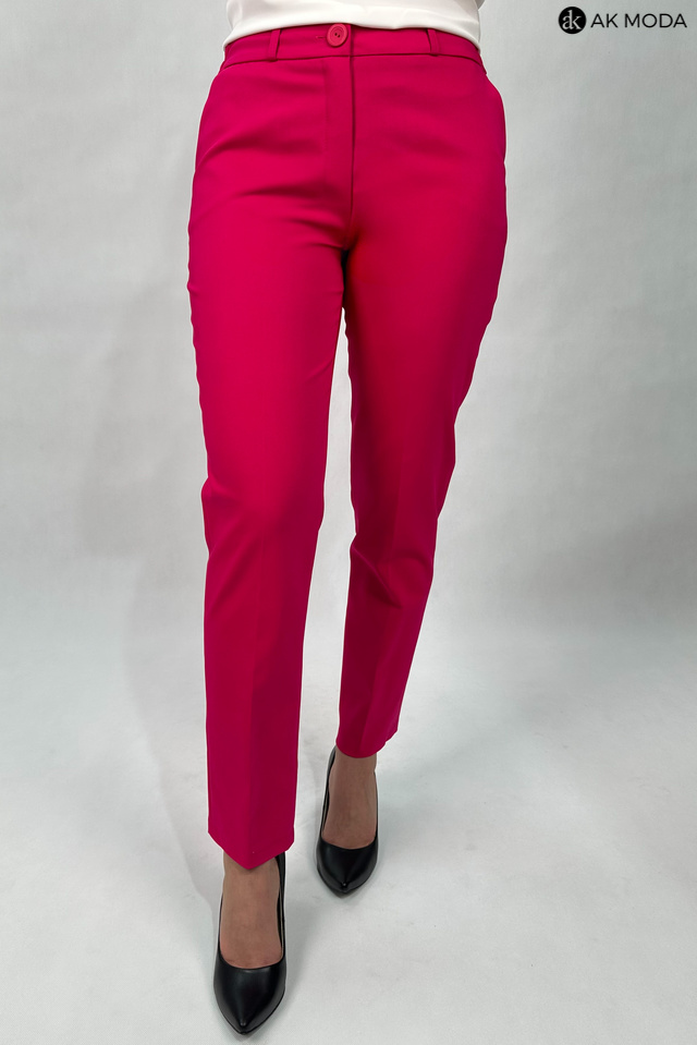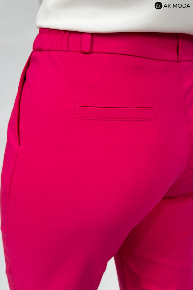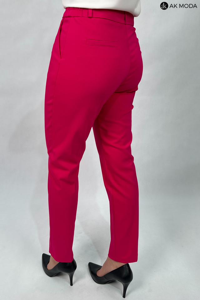 Spodnie damskie w kolorze fuksjowym, długość 7/8, w pasie po bokach gumki.