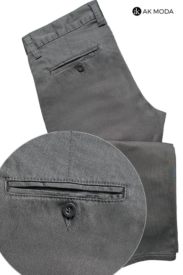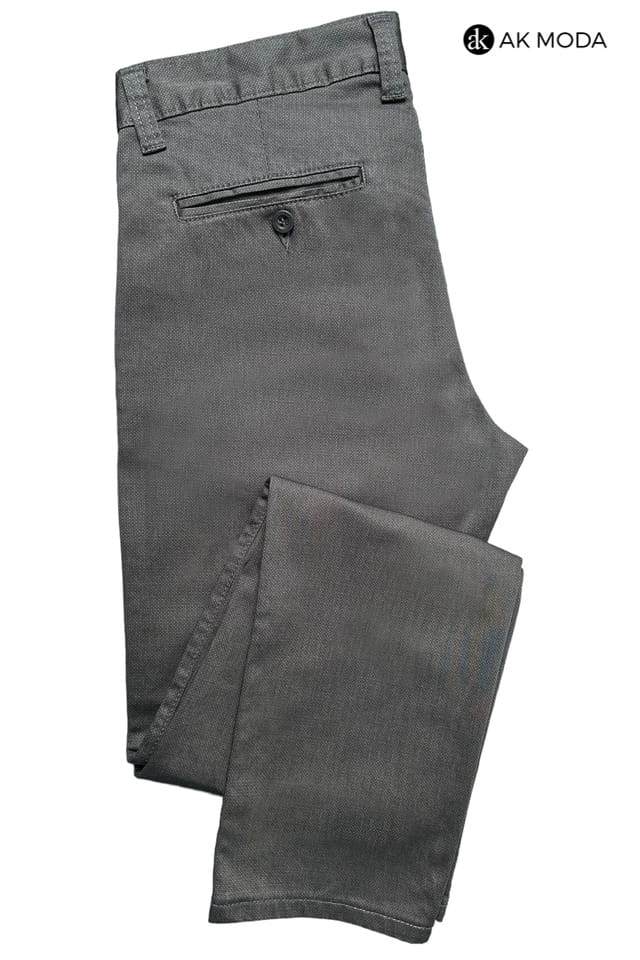 Fakturowane spodnie męskie w kolorze ciemnoszarym.