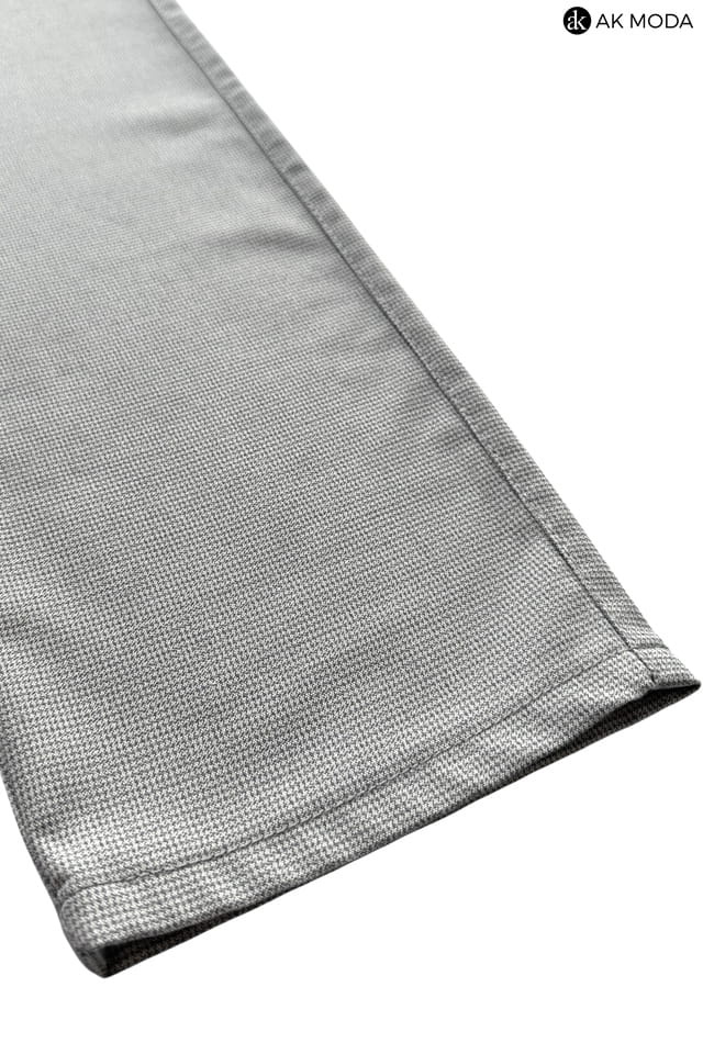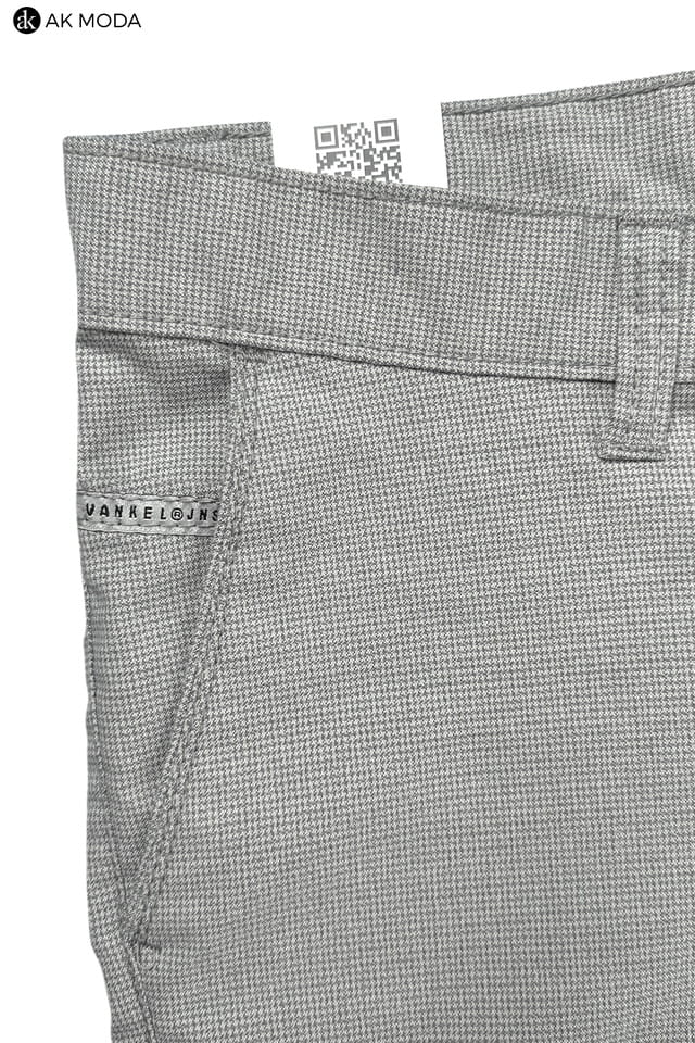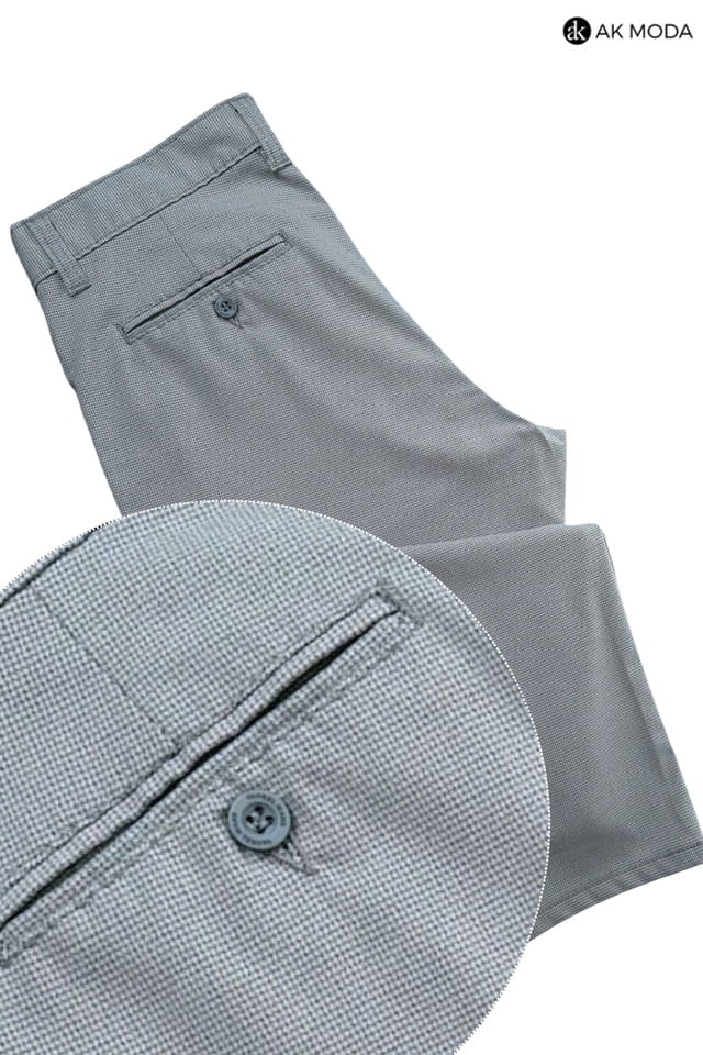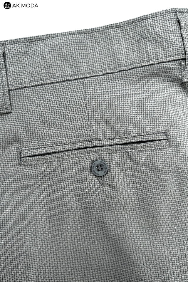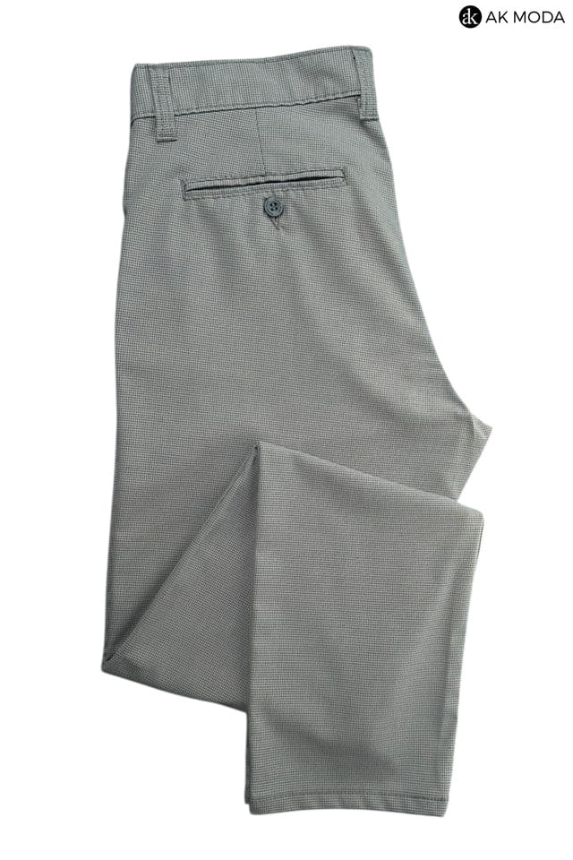 Męskie spodnie typu chino w kolorze szarym, w drobną pepitę.