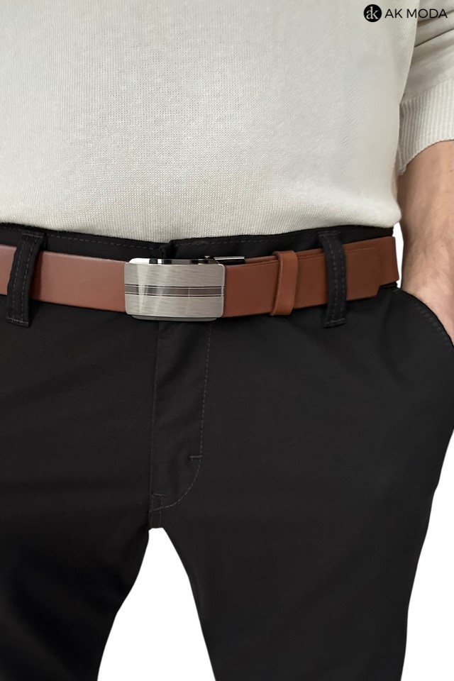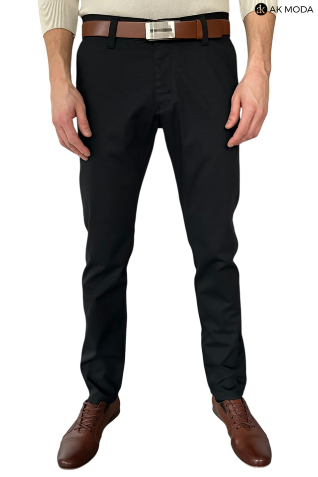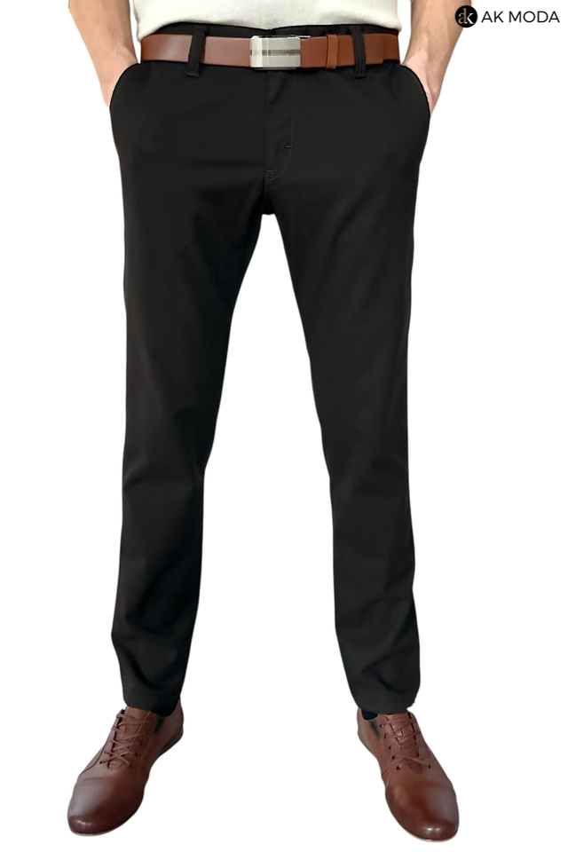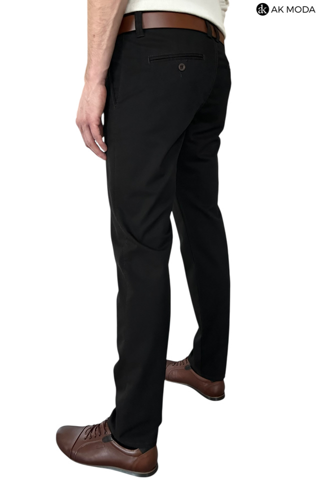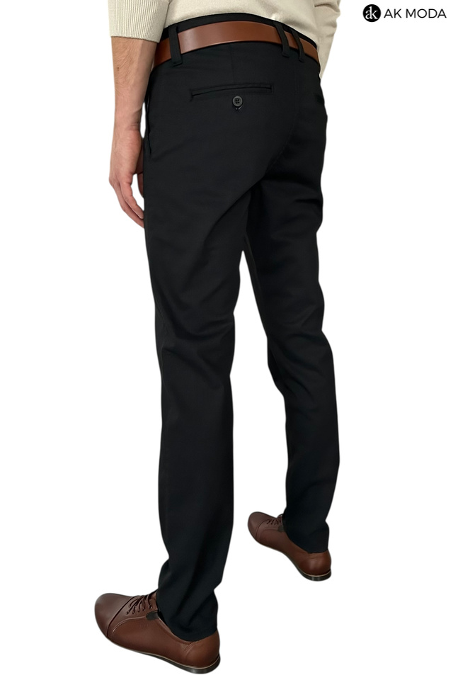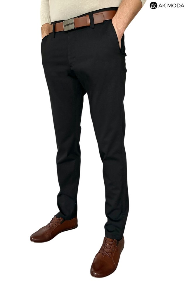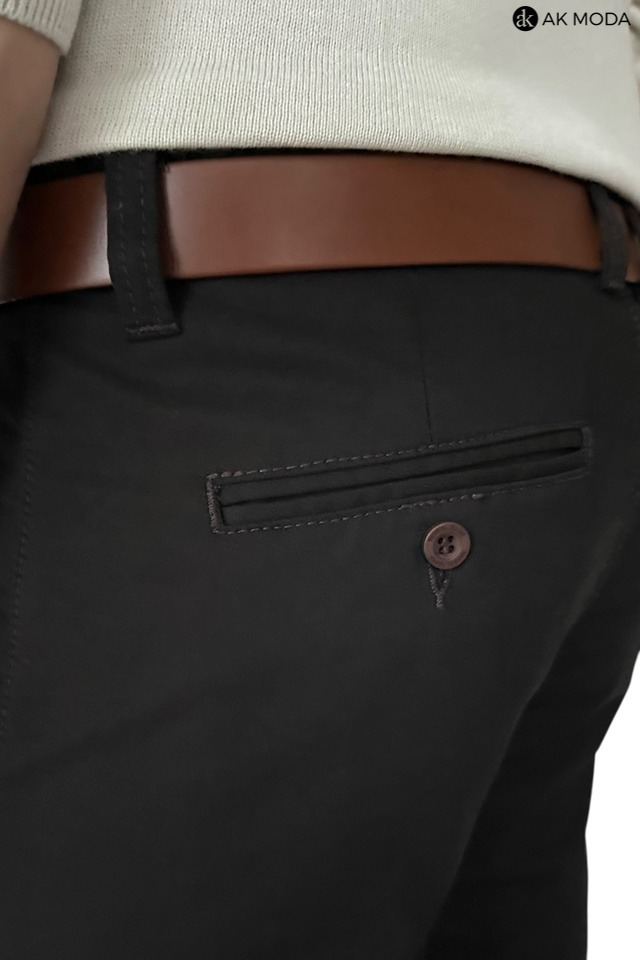 Męskie spodnie typu chino w kolorze ciemnobrązowym.